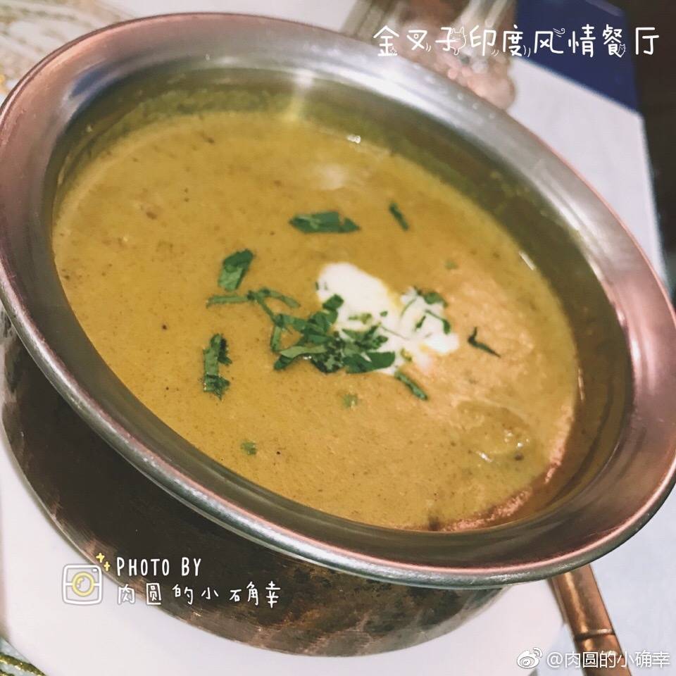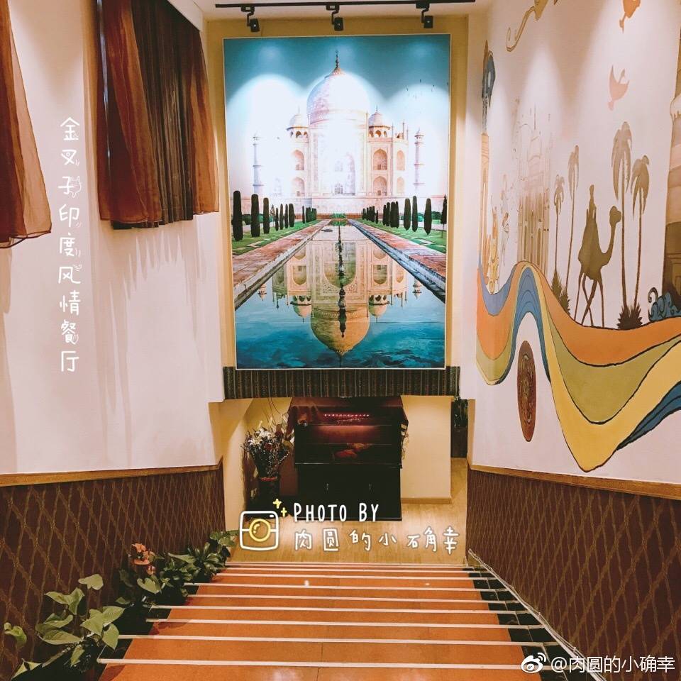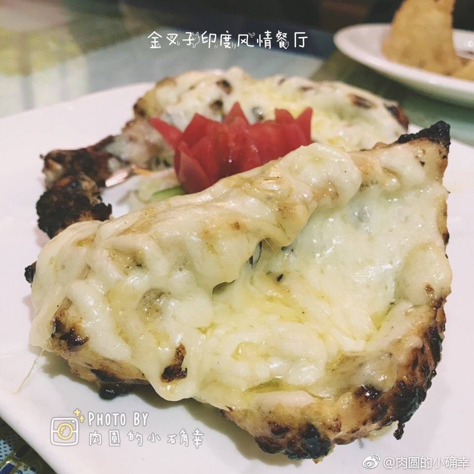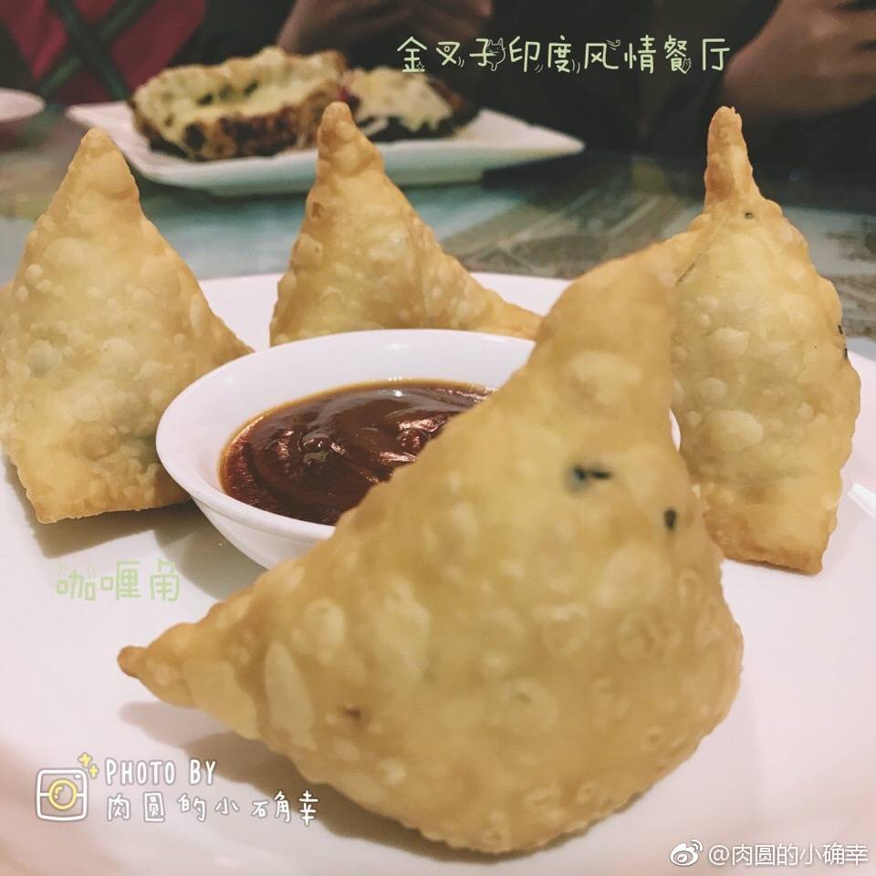 #肉圆食记# 「金叉子印度风情餐厅」地址:气象台路7号(电台道口)。在天津很有名的一家以主打多种多样调料而闻名的印度餐厅,由店内多半是外国友人的客人可见其正宗程度。店内布置得很有异域风格,是下沉式地下楼梯。 咖喱角金黄酥脆,馅料很惊喜,烤饼拼盘有多种口味可供选择,芝士的味道很浓郁,招牌印度奶茶,口感香甜,有提神的功效。