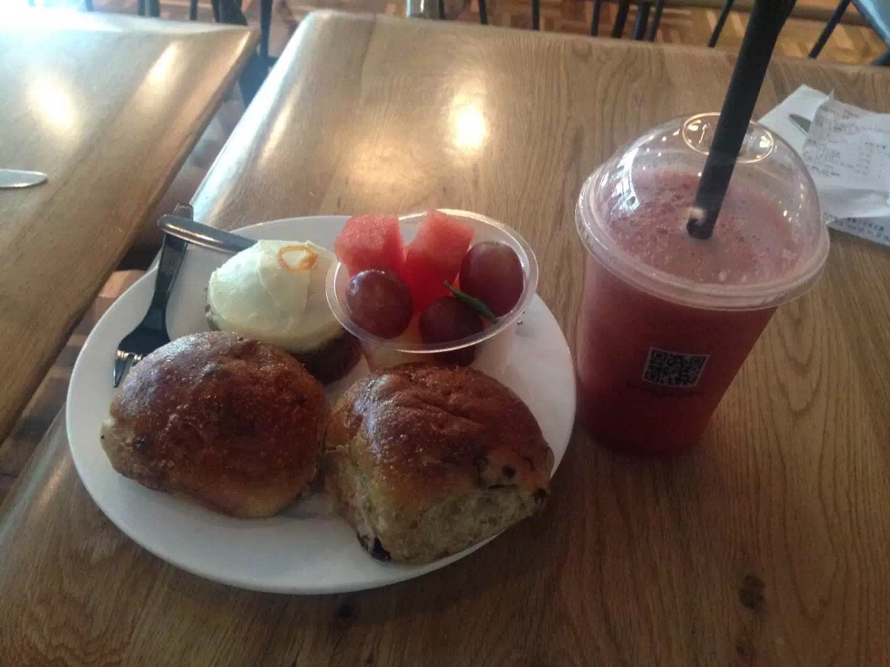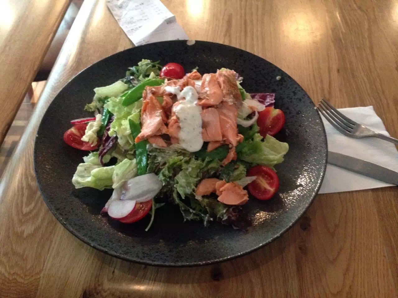 wagas是连锁的西餐快餐餐厅吧,基本上都是简餐为主。 环境还不错,环境比较干净整洁,很适合一个人或小众人来用餐。 老婆爱吃这家的色拉,本人觉得略微普通,不是难吃的意思,是很多餐厅的色拉和这家大同小异,亮点没有。 本人比较喜欢这家的饮品,各种鲜果汁混合在一起,口感还可以,很健康。 地理位置位置好,很便利。