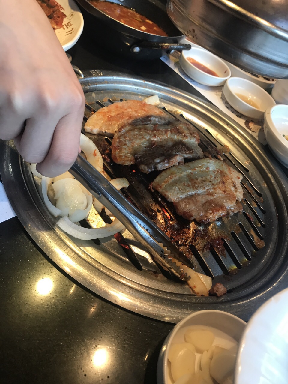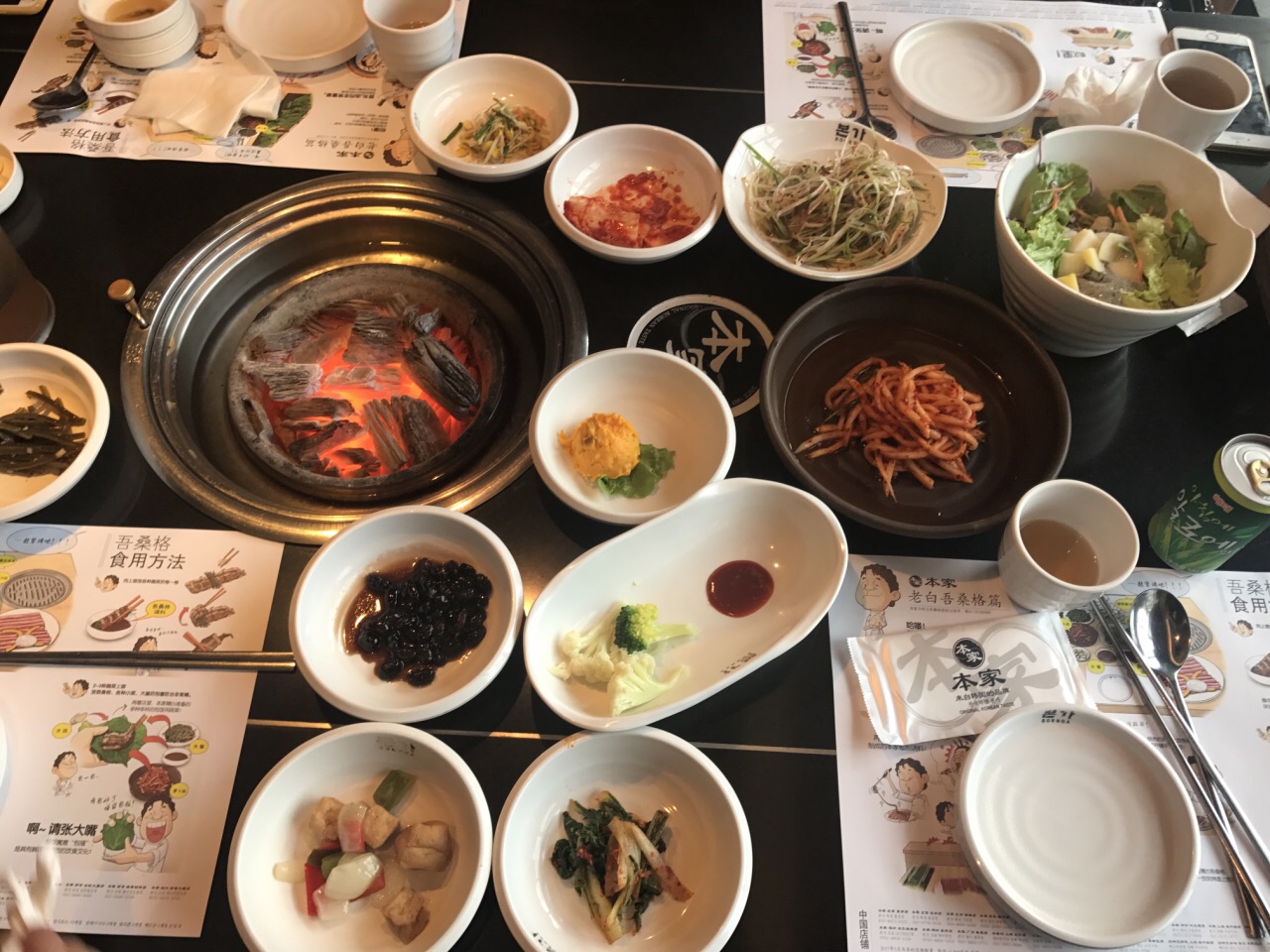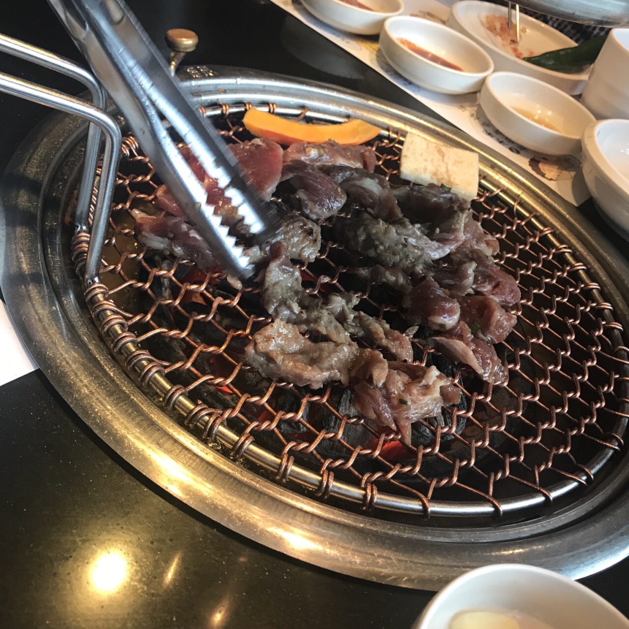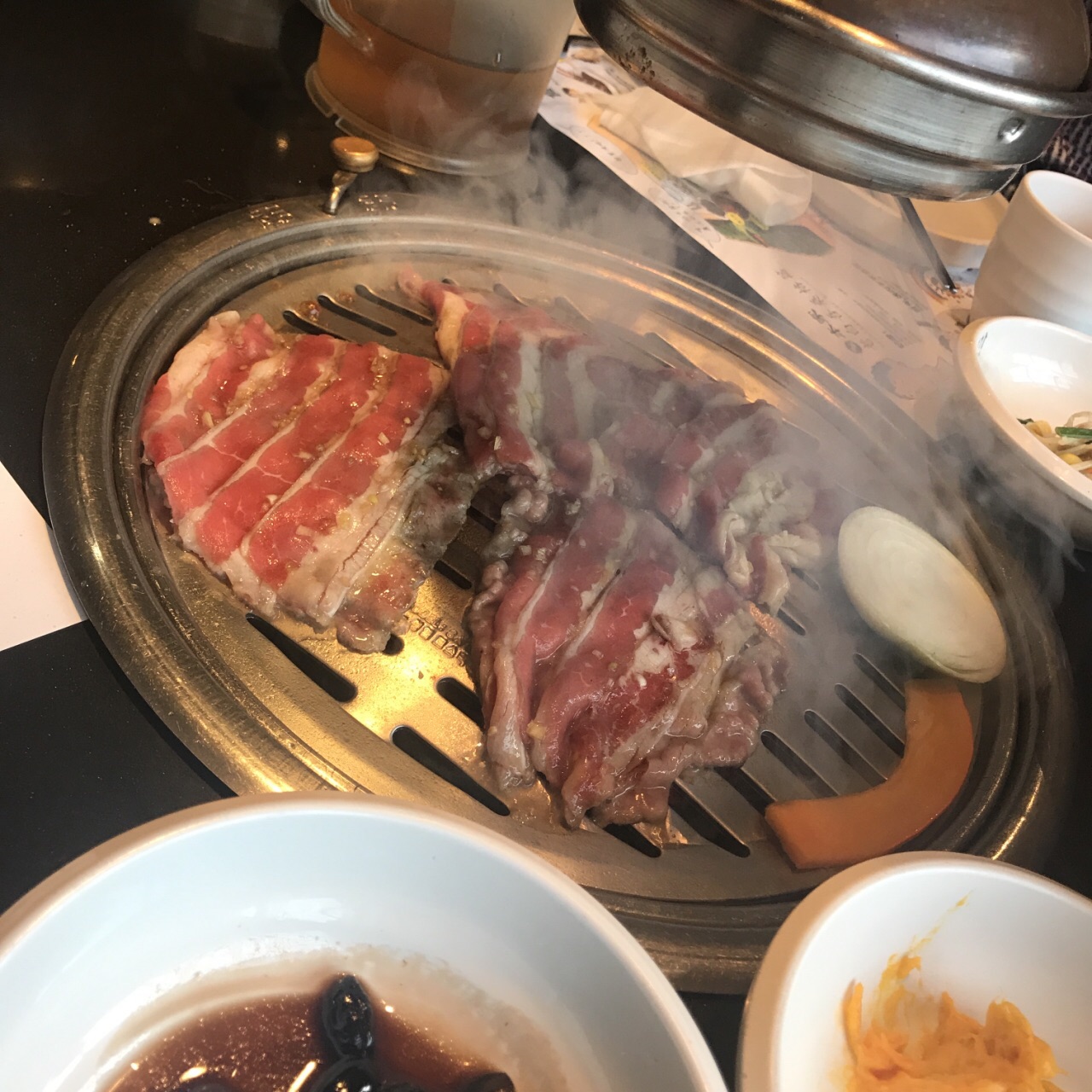 和朋友们郊游玩,再想吃啥好,很久没去韩国街啦,要么走一个,但是那么多家烤肉店,选择哪家好呢,最终我想了起来,本家的总店我还没吃过,走不走走不走,问了小伙伴们都说ok,就来啦!我只吃过田林东路那边的一家本家,这边和那边的环境还有风格感觉有点不同,现在南瓜粥,冰淇淋都要另外收费了…可能很久没吃了,店铺改革了?还是一如既往的喜欢吃野菜和吾桑格肉,相对来说比较的嫩。五花肉被考了太老………