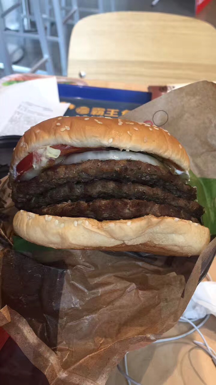 一直都听朋友说汉堡王的东西很好吃,今天有空就去尝尝,因为第一次吃不知道汉堡的量有多大,怕吃不饱就要了一个三层牛肉的汉堡,真的是真材实料呀,吃到一多半的时候就感觉有些撑了,不过因为味道确实很好,所以还是全部干掉,很满足哦