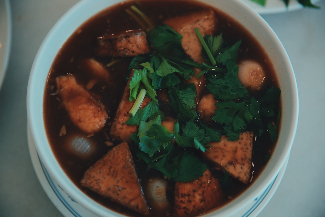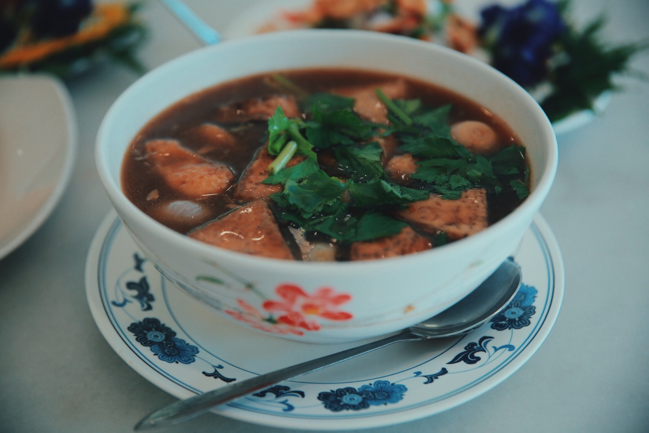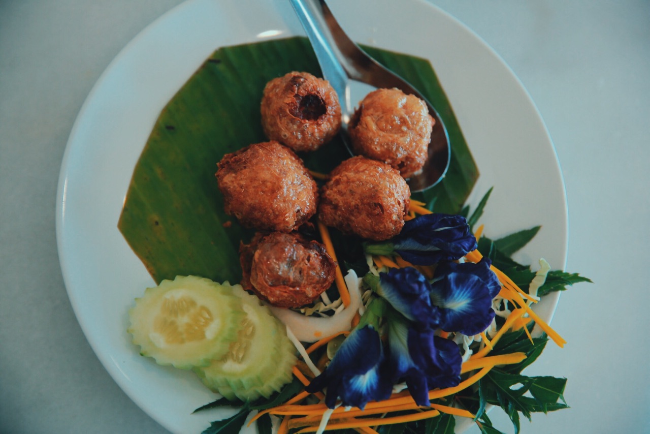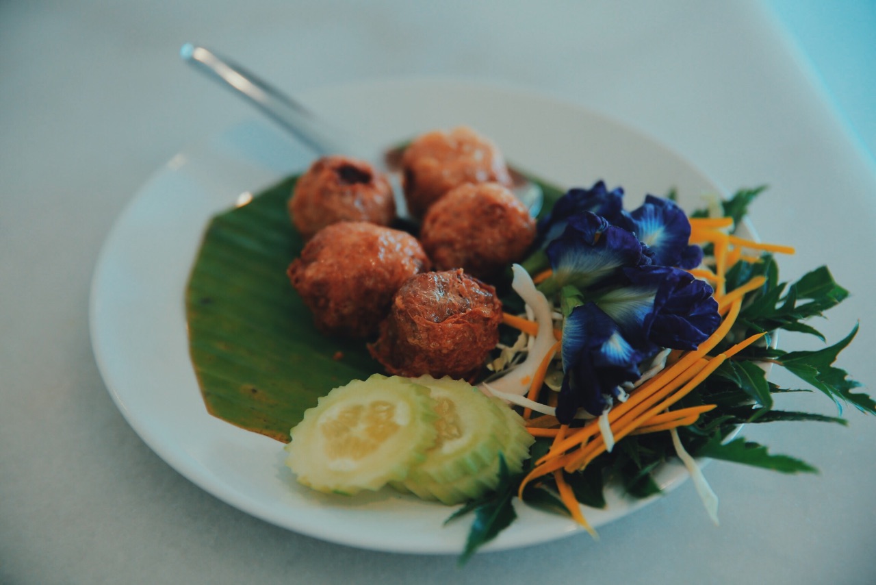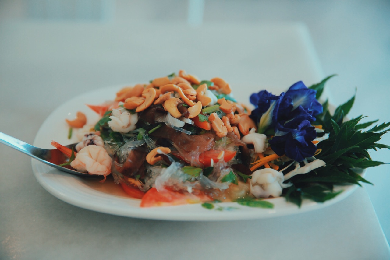 黑白主调的现代简约风设计,线条简明硬朗,整洁大气、安静端庄地坐落在甲米塔拉公园附近。餐厅内冷气开放、光洁明亮到可以反光。虽然是泰国菜餐厅,但是个别菜肴的做法偏中式烹饪。餐单有中、英、泰文,而且都有贴心的配图。与常见的菜名不同,凉拌酸辣粉丝貌似主要食材是粉丝,却有实实在在的大块虾仁、鱿鱼、腰果、木耳等,餐厅厚道实诚,味道酸甜鲜美、滑脆相佐,口感丰富清爽;餐厅还有自制的饮料百草汁、洛神花汁等。