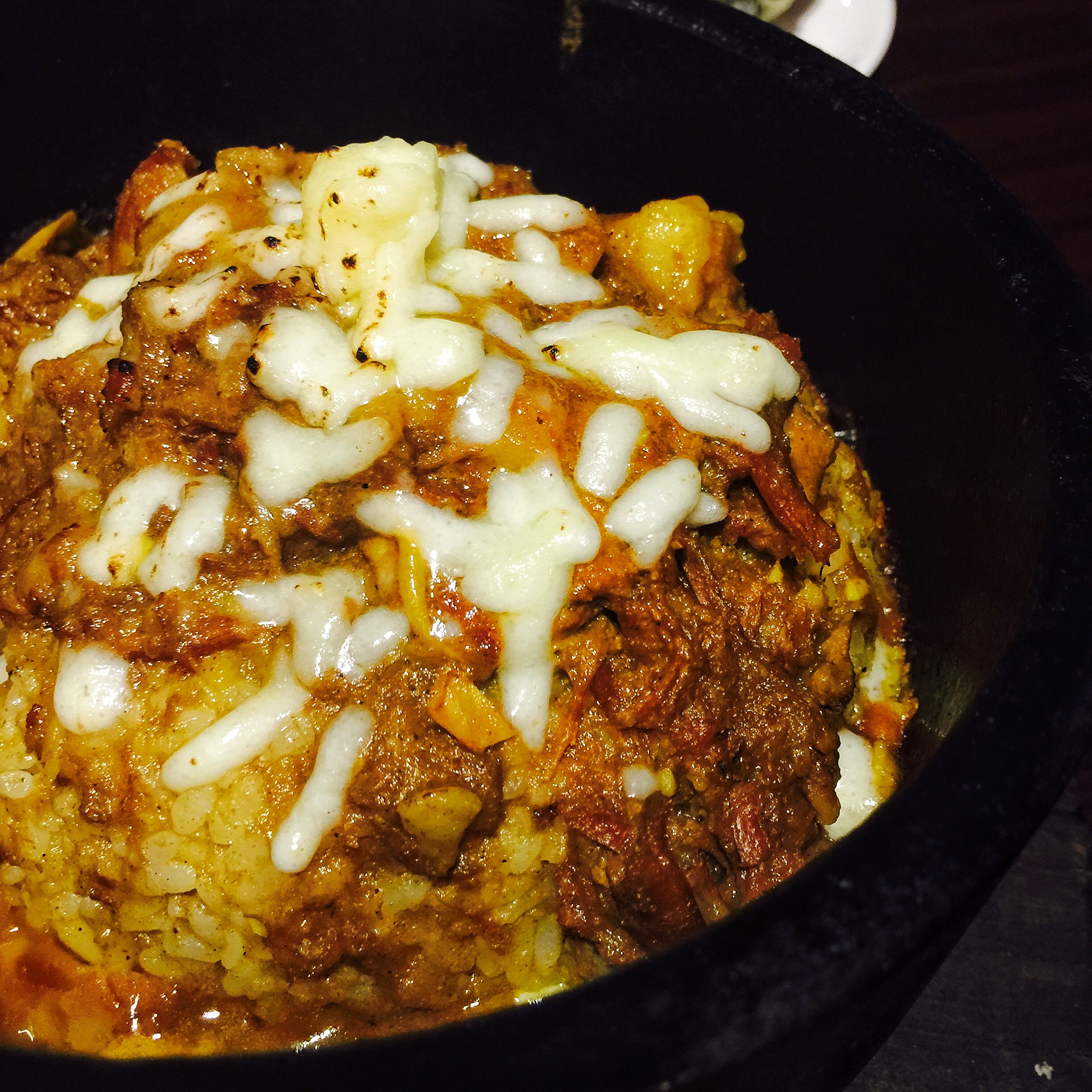 去店里吃了两次 但朋友对烤的内脏没什么太大兴趣 所以都点了石锅饭与甜品 店内的生牛肉拌饭真的很好吃 生牛肉丝上打上一个鸡蛋 快速搅拌后牛肉变色 香气四溢 米饭也很好 颗粒分明 带有焦香 即使很烫 也忍不住想把饭大口送入嘴中 芝士牛杂咖喱饭也十分好吃 咖喱味浓厚 饭后最爱店内甜品 菠萝爽 菠萝里面是冻住的菠萝味冰淇淋 超级喜欢