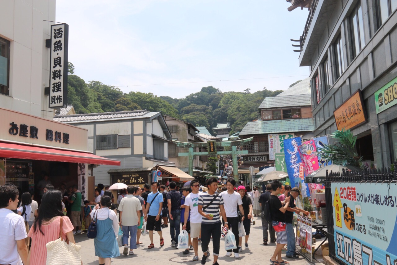 江之岛,位于东京西部,乘车至“大船站”可以购买一日游的交通卷与镰仓一起旅游。购票后,从大船乘车至江之岛站,下车步行1.2公里上岛。这里临海,属于半岛风貌,是著名的度假区暑期游客特别多,许多是日本本土的度假客,岛上主要有神社、观景台和岩洞三处景观,因时间和带了老人孩子的缘故,只看了神社和观景台,神社很壮观,观景台看海很棒,总体感觉不错。