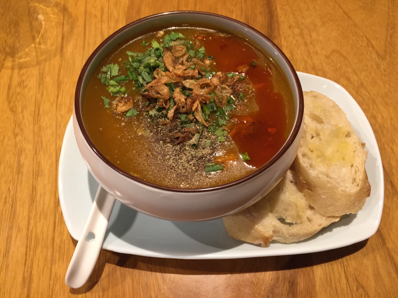 上次路过这家看到不少人在排队,于是这次来试一下。虽然在地下层,但环境还不错,自助饮水吧台很方便。火车头的料非常足,牛腩+牛腱+牛丸+牛筋+牛百叶,的确很不错。服务也很好,吃炖牛肉时,问服务员可否增加点蒜香面包,立马给拿来了。