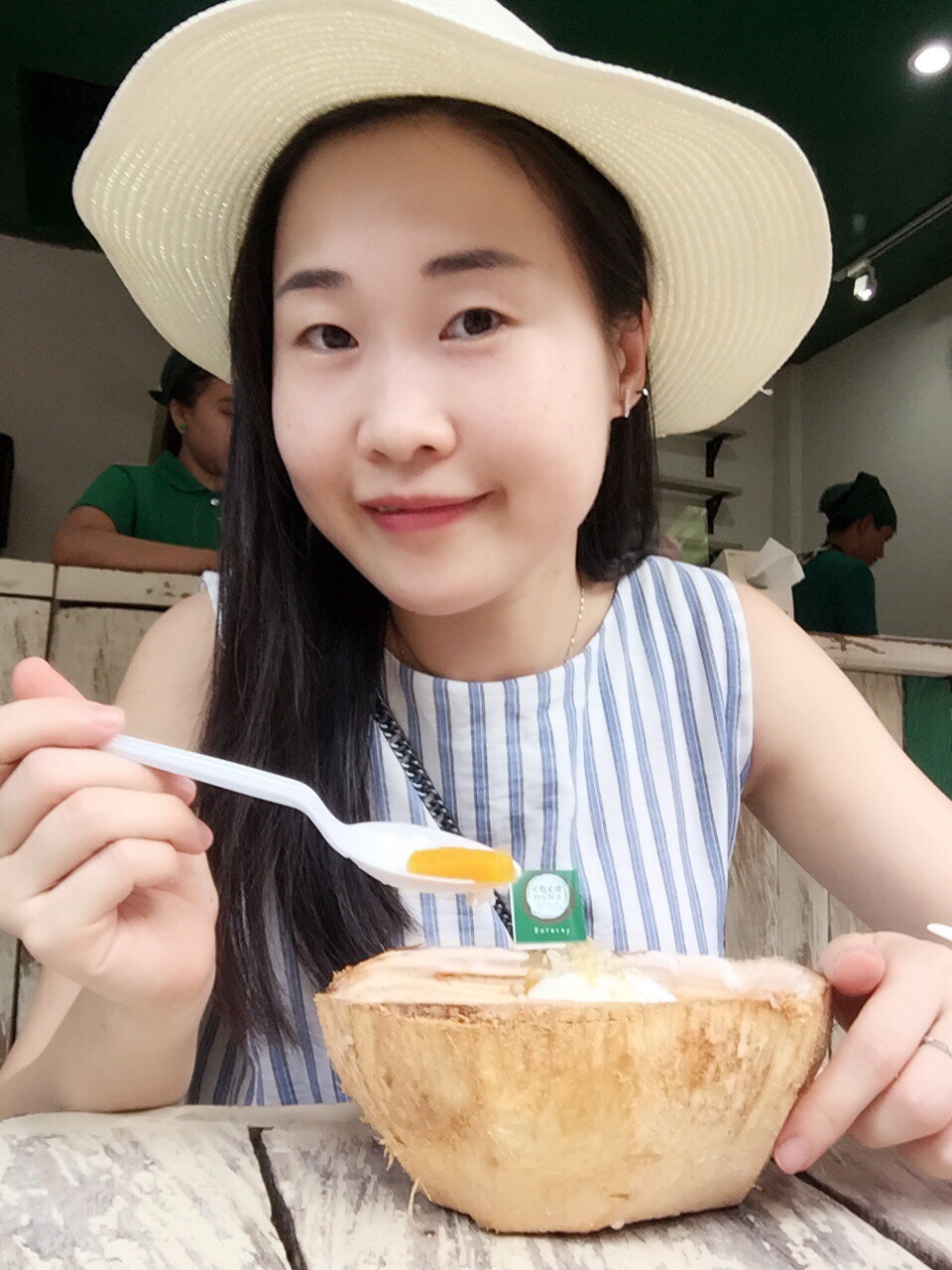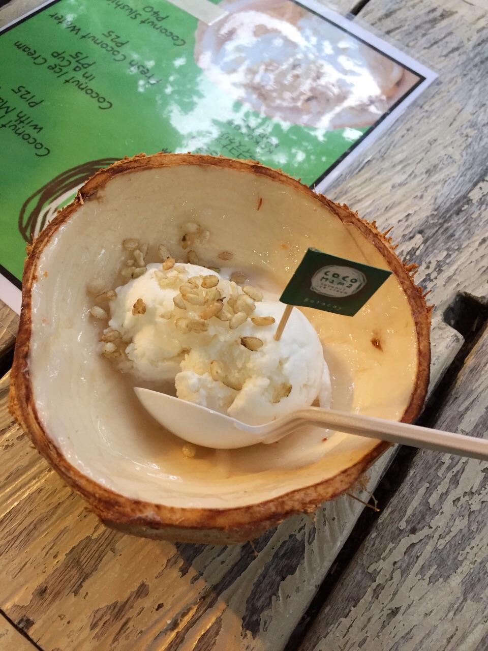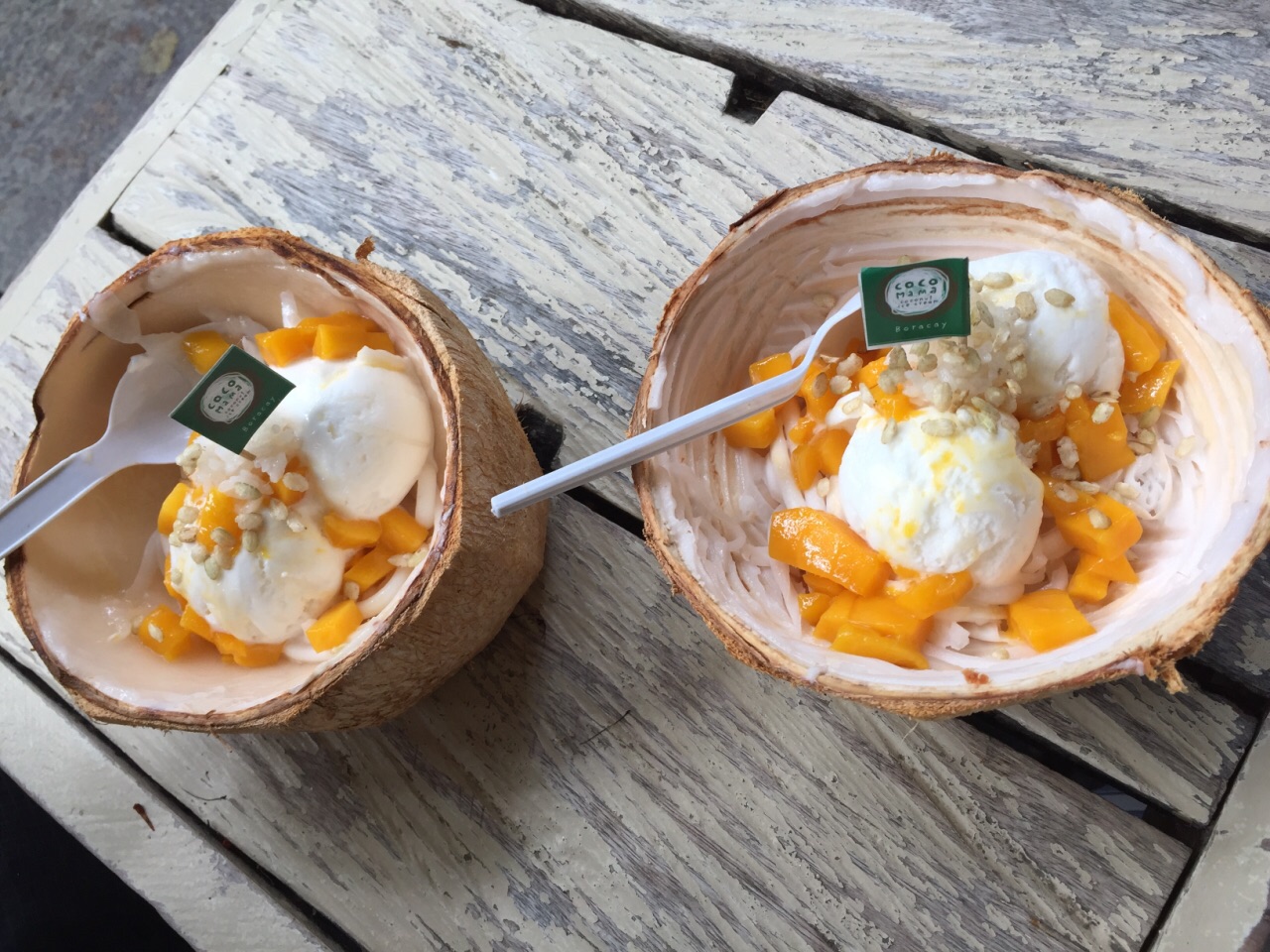 在一个小市场的小路上,我来回走了几次才看得到,因为店面不大又不起眼,门前就两张台,还有很多苍蝇,环境不怎么好,但是东西很棒,真心推荐!价格又不贵,如果你喜欢吃泰国的芒果糯米饭,又喜欢吃嫩滑的椰子肉和椰子味的雪糕 , 这个椰子肉芒果糯米雪糕能同时满足你三个愿望。最后临走时还去试了原味的,也很不错哦!