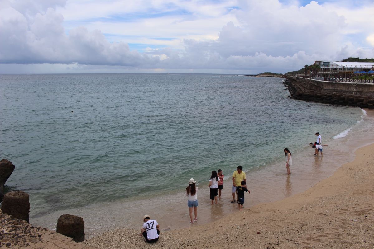 晴天的时候拍照很好看,蓝天白云和海里蓝色的渔船颜色非常搭,顺着渔船方向绕停船区走一圈能够走到灯塔那边。可以开车过去,如果步行略有点远,有些人已经迫不及待地下海戏水了。另一边沿着渔船旁边的路一直往前、然后向右能够到达出水口,在这里可以看到神奇的泛荧光蓝色光的海水。可以步行,也可以开车过去,但是观赏区离海水很远,不能近距离地观察。后壁湖海港城里可以吃到新鲜实惠的生鱼片。邱家生鱼片和阿兴生鱼片都在这里,100百台币就可以吃到20片厚厚的、新鲜的生鱼片,可以一试。