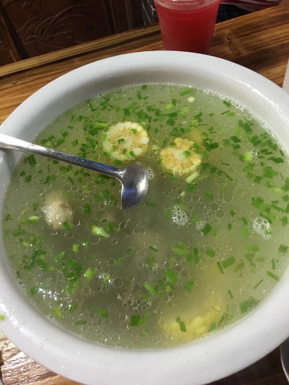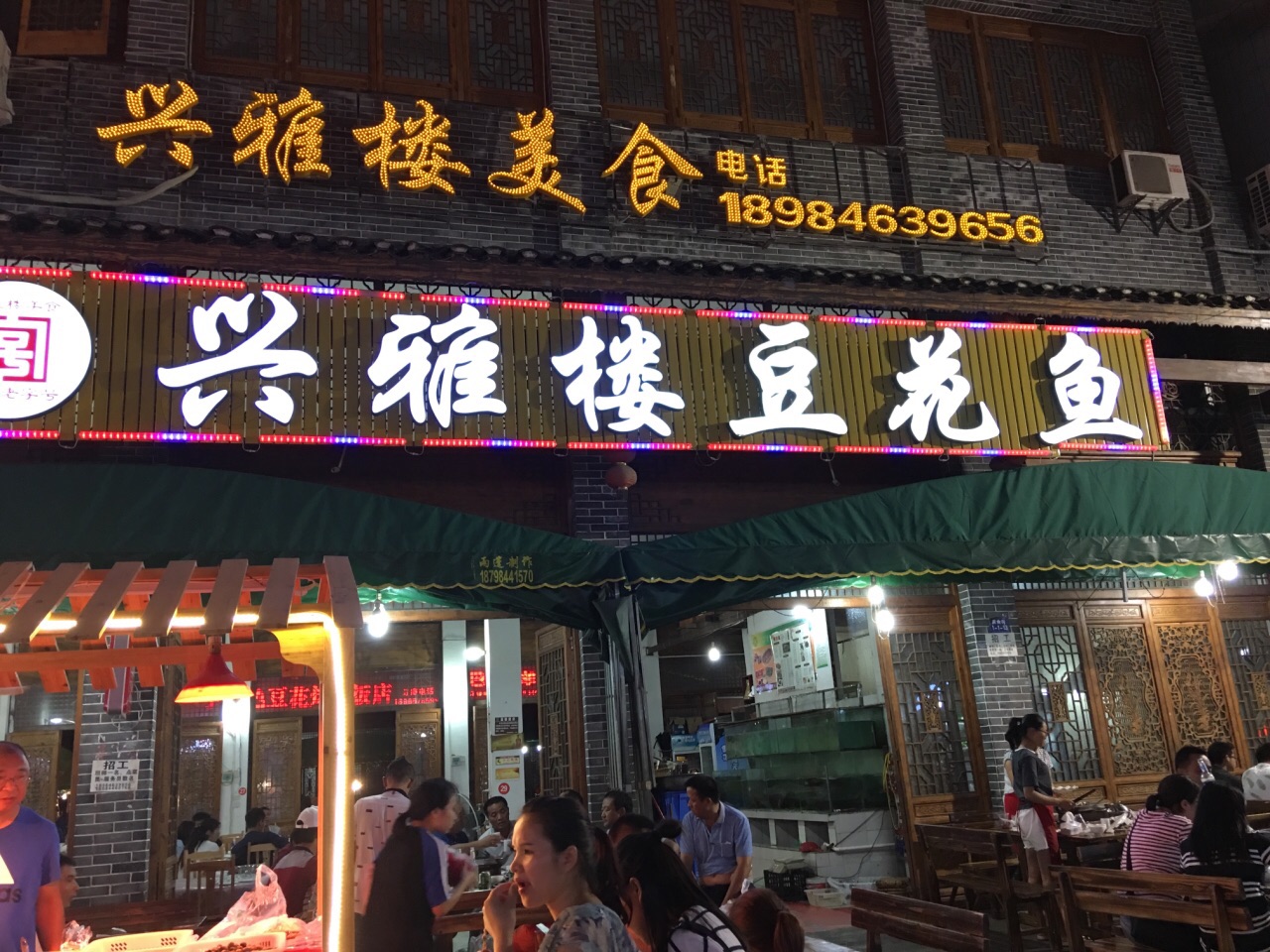 在荔波的第二晚依旧去了樟江美食街觅食。第一晚吃的好好吃无烟烧烤觉得性价比一般,因此看门口坐着的人气果断换了这家店。这次挑了一条两斤多的小七孔青鱼做豆花鱼,价格在一百五十几元。鱼身上铺了很多豆花,还有很多薄荷点缀,不过我们吃不惯薄荷,觉得好难吃,都挑掉不吃的。鱼肉很厚实很入味,豆花混合在微辣的汤里吃起来味道恰到好处,非常的好吃。豆花鱼一定要微辣的才好吃,太辣的话豆花味道就没那么好了。烤土鸡九十几元一个,量很大,装了两盘,肉质很香很好吃。野菜我们是看着菜挑的,所以味道蛮好的,清新爽口。醋溜土豆丝味道也正正好好。螺丝蛮新鲜的。骨头汤点的有点多余了,其实都没怎么喝,只是把里面的东西挑光了。这个味道一般。这家杨梅汤差不多都是中杯的,6元一杯,个人觉得味道比旁边的喀斯特杨梅汤好喝,杨梅味比较浓厚,偏酸一点。晚上在外面吃虽然有点热,不过会有点唱的人,边吃边看热闹也不错。总体这家店的味道还是蛮好的,量也是非常的大,值得赞扬!