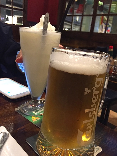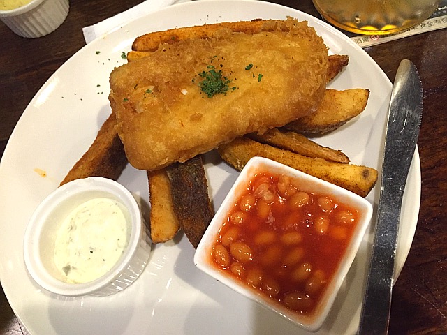 ...英国食物,点的是喜欢的鱼排+薯条+生啤,其实如果有人肯一起分享凯撒沙拉更完美,不想浪费,下回吧