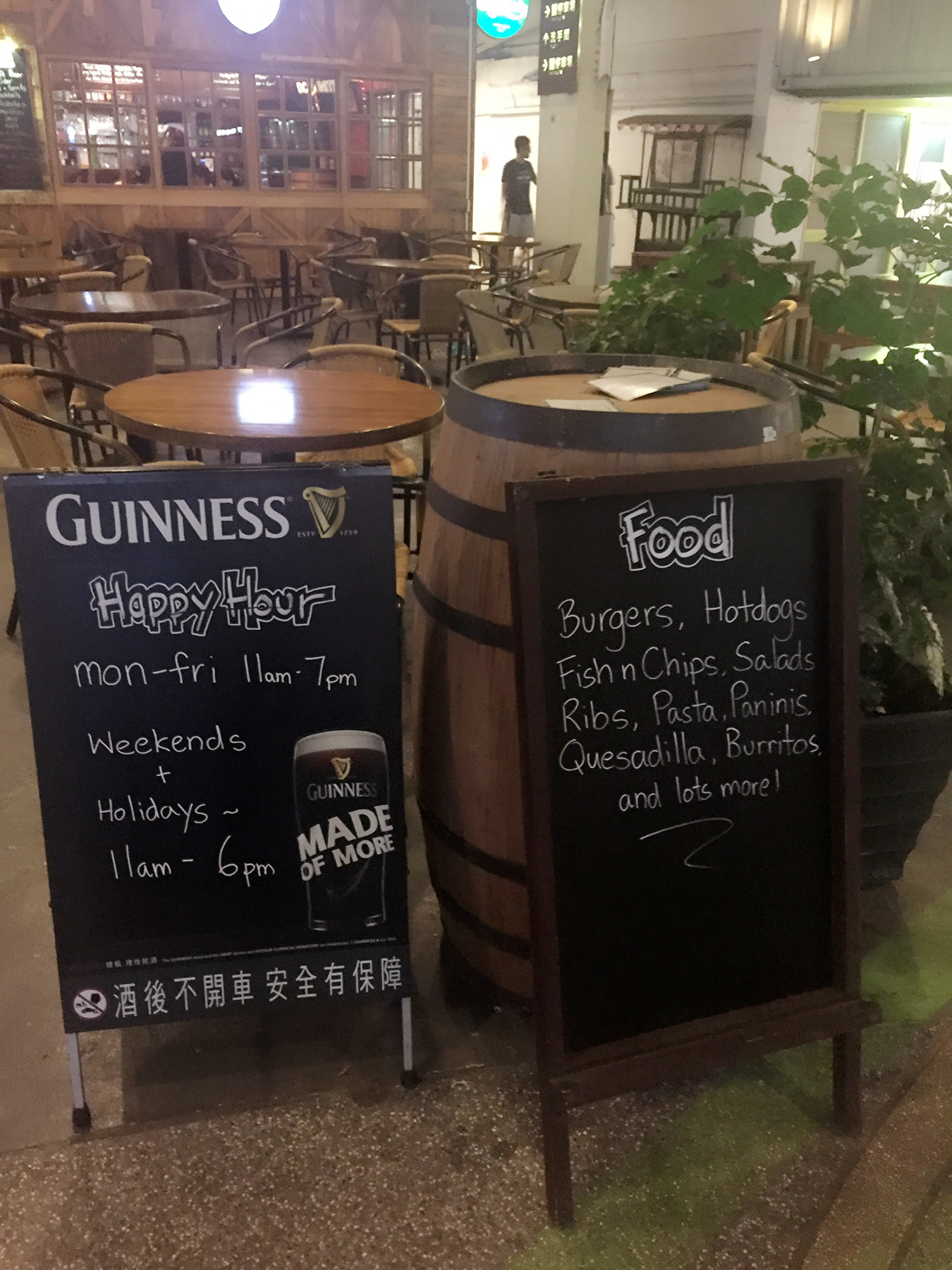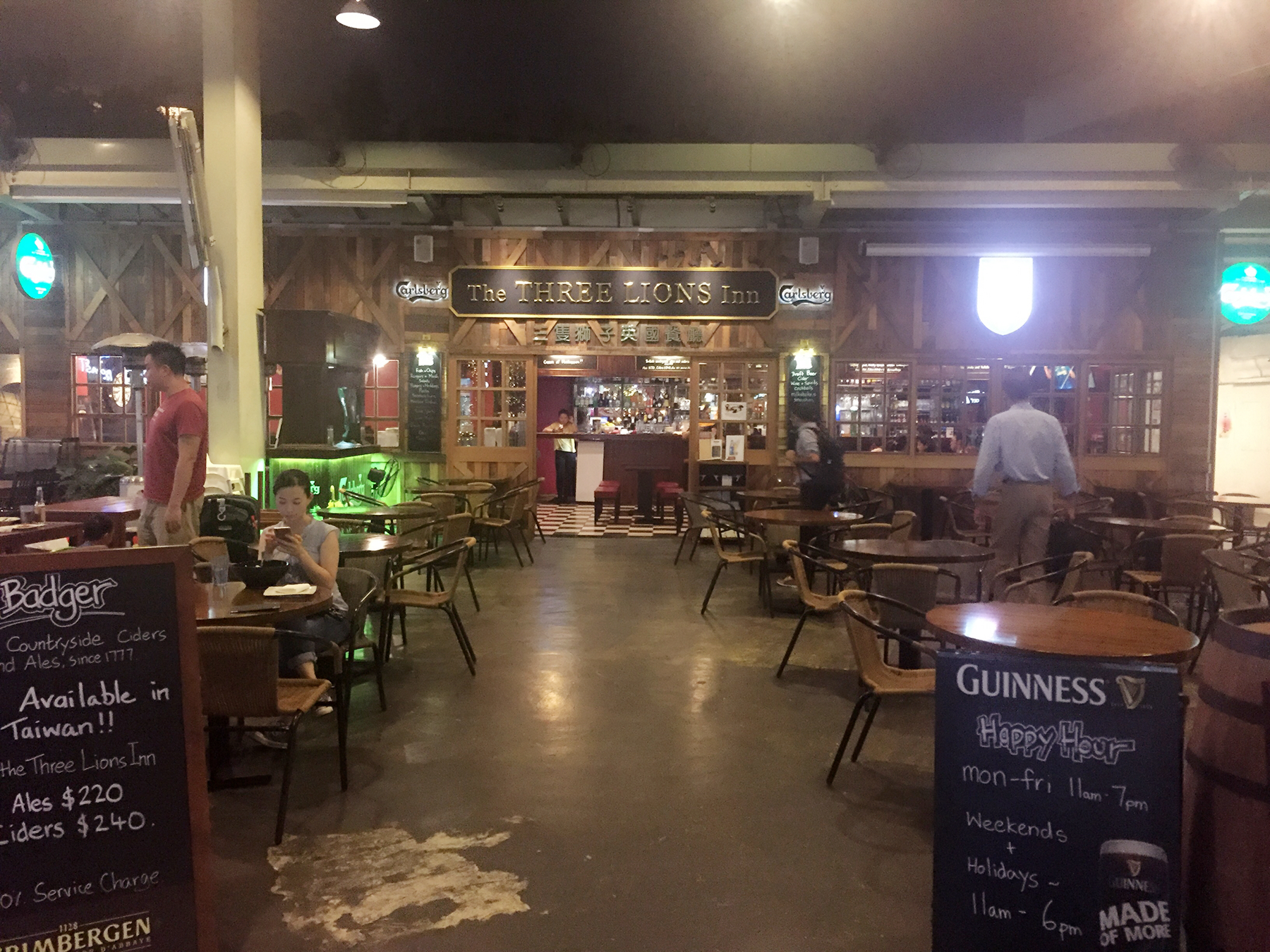 捷运圆山站,“集食行乐”园区,以前的花博会,现在有一片集市、餐厅围绕 那天是周五的晚上,有驻唱歌手在中庭表演,选这家中庭旁的餐厅,纯属可以听得到歌声、又不会太吵 在台北吃英国食物,点的是喜欢的鱼排+薯条+生啤,其实如果有人肯一起分享凯撒沙拉更完美,不想浪费,下回吧