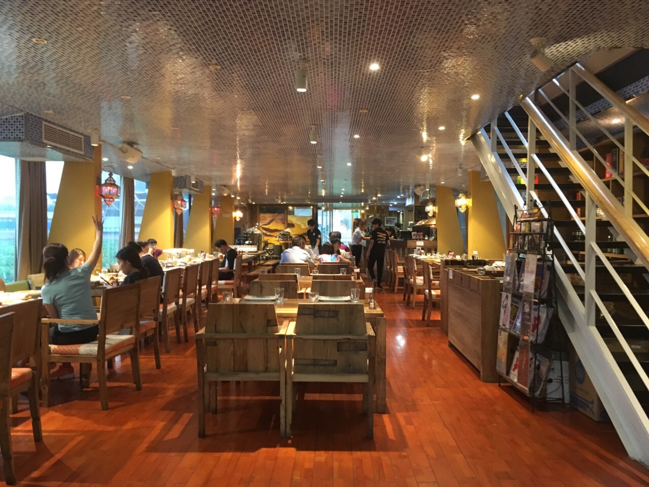 因为最初的喜欢,一年间和不少朋友都推荐过坐落在工体大船上的阿凡提,论米吃串,论米喝酒,有音乐有足球,吃货真心不可错过~ 这一次去,从服务就觉得有落差,完全没有以往的热情,男领班倒是很不错,会提示给娃吃的做的不辣,大人最好试吃之后再给孩子吃。一米串,还是真材实料!羊肉好吃的不要不要!鸡翅很入味,而外皮又完全不会烤焦。两款沙拉,阿凡提偏甜了,西葫芦又偏咸…略感失望。以前给我印象深刻的糯米手抓饭,这次却是普通米,胡萝卜放得有点多,吃起来又是水烂的口感,不是很美好。馕丁炒肉好好吃,酥脆的馕丁加上羊肉的香味,实在停不下来。大盘鸡也是烤馕垫底,做得微辣,但感觉也挺辣的。因为开车去的,半米啤酒换的一扎冰柠檬酸梅汤,还可以吧,喝起来不像勾兑的那种。晚餐时段9点之后有乐队驻唱~
