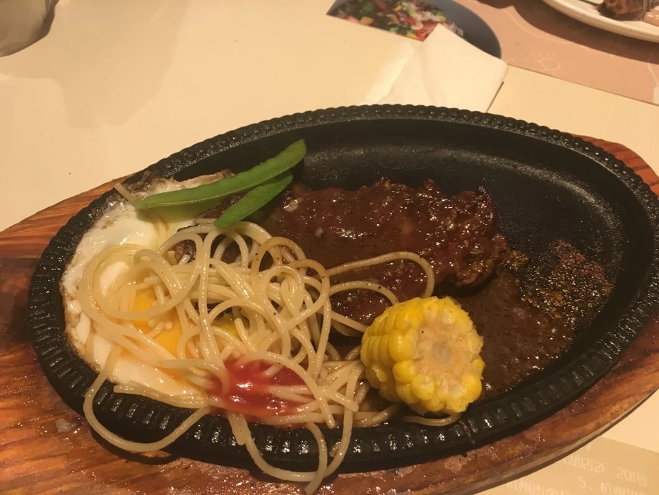 东西还好吃,点了牛排,意大利面,披萨,还有鸡米花和饮料,都吃光光了,口味还行,但是没什么特色,...东西还好吃,点了牛排,意大利面,披萨,还有鸡米花和饮料,都吃光光了,口味还行,但是没什么特色,饭点的时候门口等的人到不少