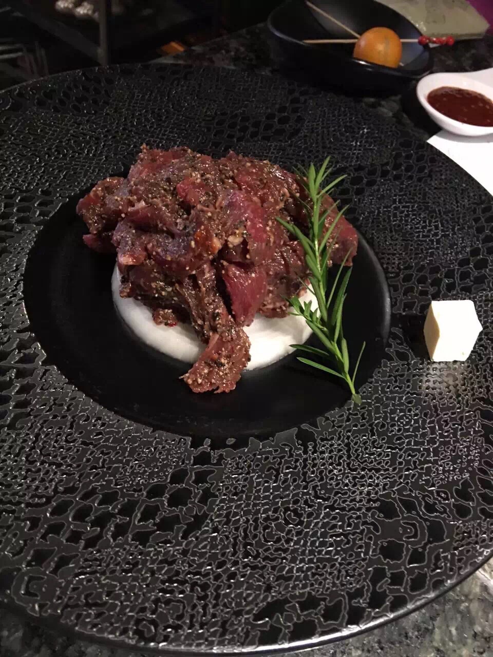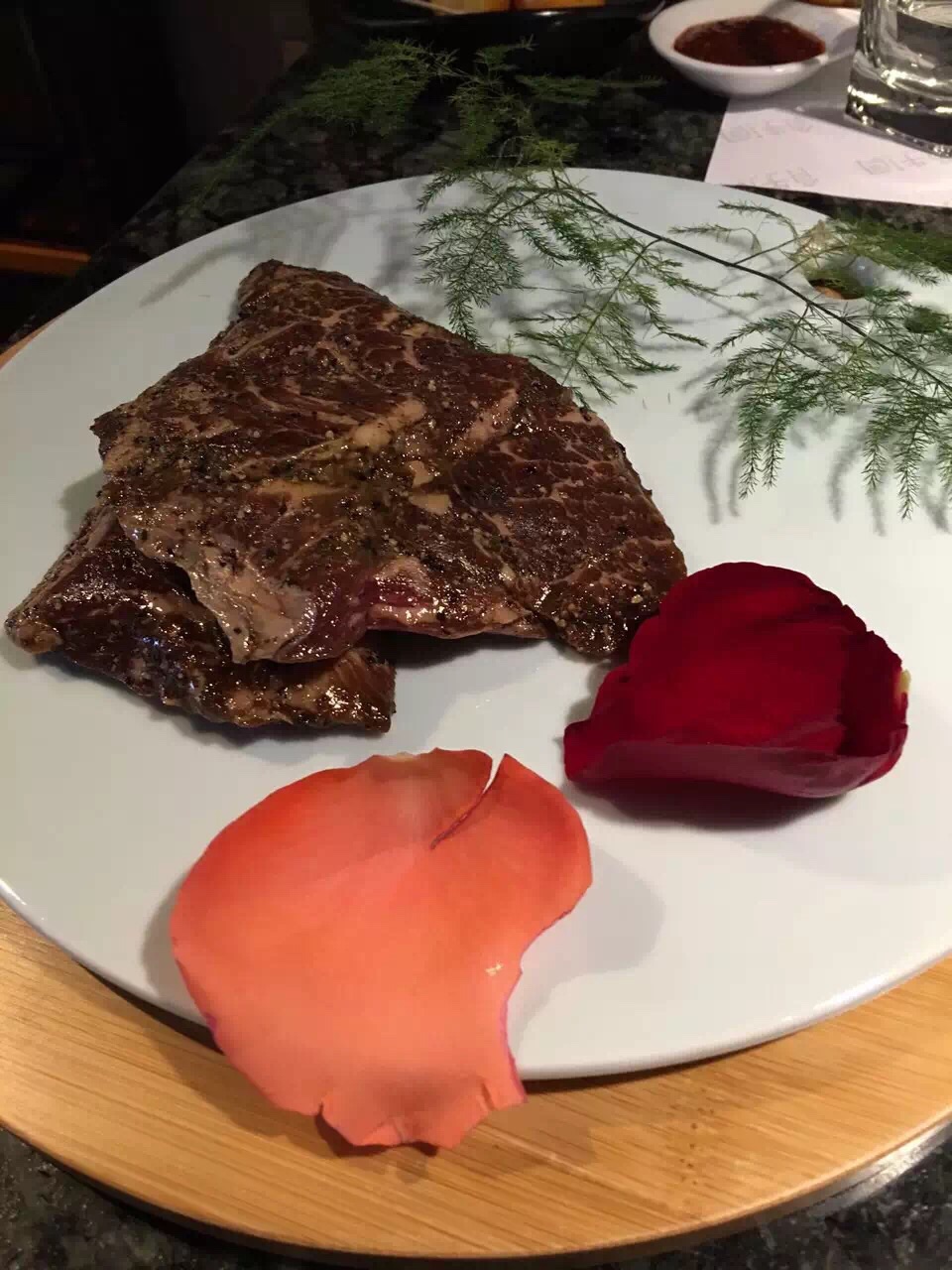 门面看起来简洁高档,左面是鱼馆右面是火锅,食牛间是一家不错的烤肉店哈哈 进门设计的很独特,是自动感应的大铁门,小伙伴千万不要以为不营业呢,因为有时候门不好使,二楼环境类似中式设计,服务员会帮助你烤肉,不需要自己动手。 菜品的话推荐牛肉,牛肋条,深海大虾,酸梅汤也是不错的,瓶子很可爱。 另外绝世好饭不容错过啊,上面一层饱满的牛肉芝士,干吃一盘饭就很满足啦。 鱿鱼是烤好了上来的、不要再加工,直接吃就可以了。烤的干巴巴的香。 商家会按照用餐人数赠送餐前水果的,档次一下上来了。总体比较满意,人均60两个女生可以的了。