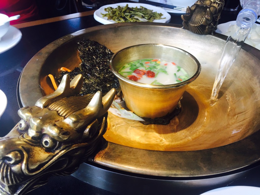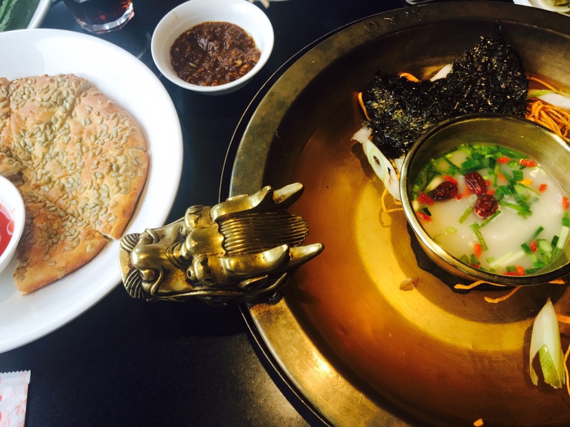 餐厅用餐在二层,文房四宝、书墨笔画闲情雅致。 天就特别适合吃#冰镇小龙虾#,冰镇龙虾才能体现出龙虾的鲜美度,个大不用多说,原味冰镇保留了龙虾的美味,沾酱吃更是清爽摆盘精致烟雾缭绕~ #招牌馕坑烤羊蝎子#悬挂式羊蝎子端上桌好震撼,超大羊蝎子可比以往吃的大上一倍 #恒大冰泉锅#洪太极家火锅外部选取恒大冰泉,恒大泉水为锅底涮羊肉和蔬菜特好吃,内部小锅为羊汤,涮菜品同样鲜。店家还精心的在羊肉盘上标有下锅时间,热气羊腿肉很香嫩 #红柳羊肉串#羊肉带有红柳枝的香味