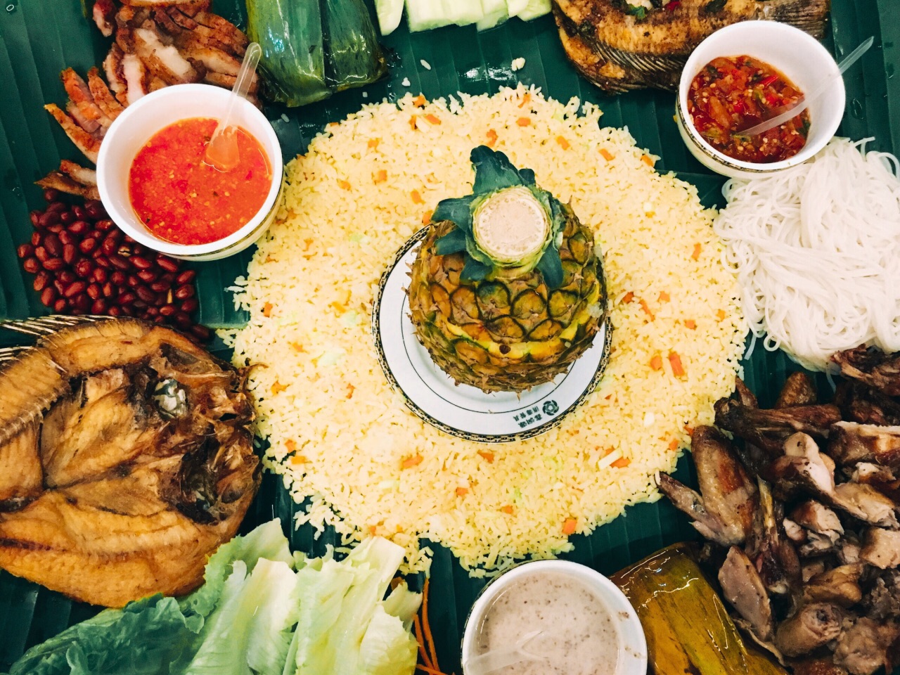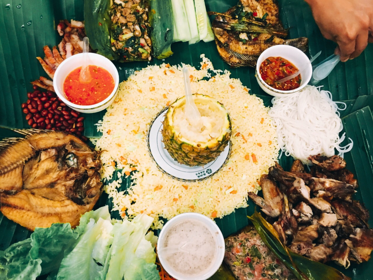 寻找最原始的版纳美味... 于是来到了版纳最原始的版纳小吃街—曼听小寨.. 发现了这家黎明傣味楼 点了一个超级大的拼盘,因为在来到版纳之前,就看到过这样子的拼盘了,一来到烧烤店就一定要点这个。 拼盘包含了烤鱼烤鸡包烧肉手抓饭菠萝饭等等.. 再配上酱汁儿,加上米粉,如此美味..