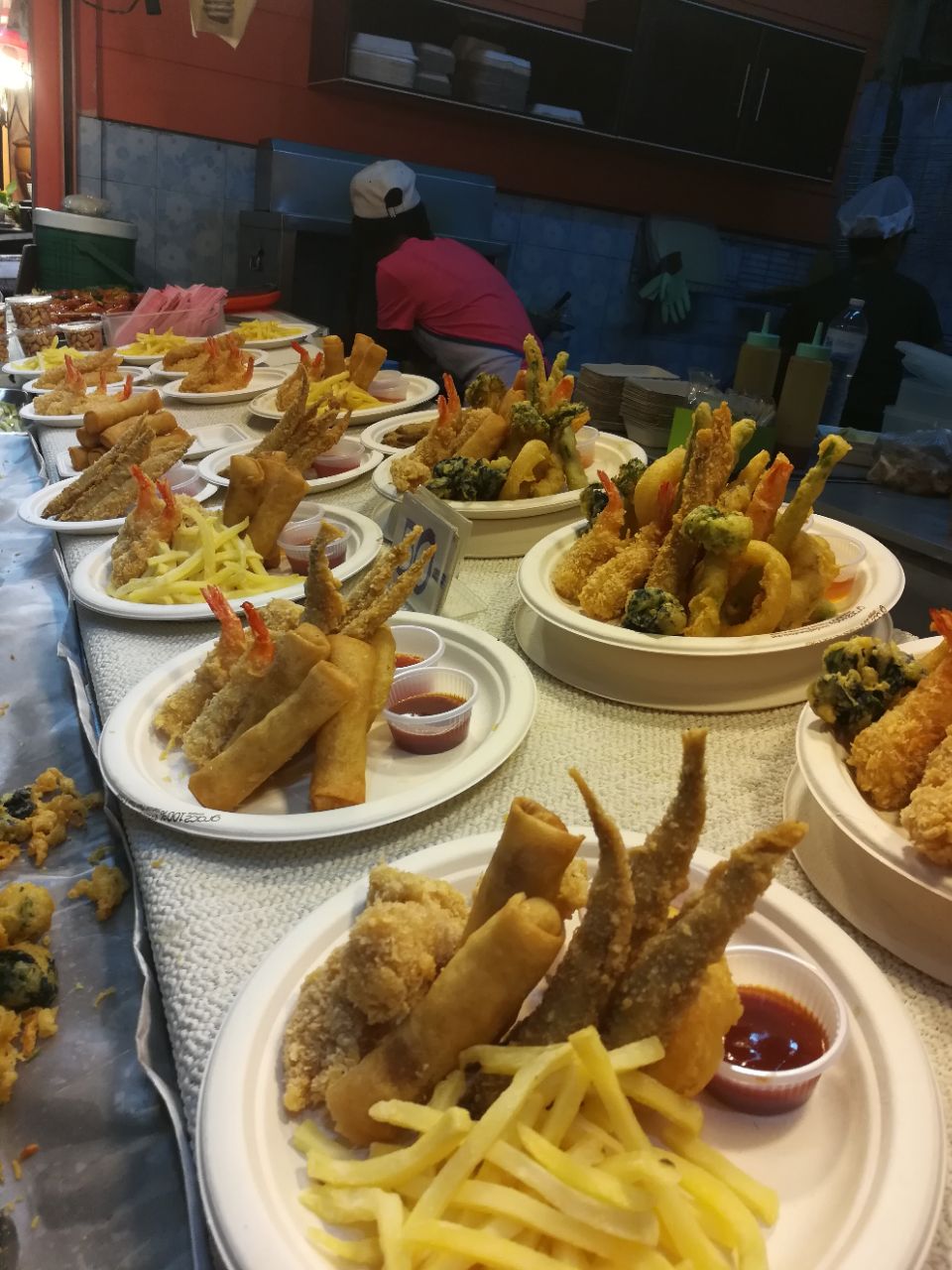 图一的一盘炸物只要50铢,味道还是很美味的,海鲜也便宜。出来夜市,街边有好多马杀鸡店,很不错