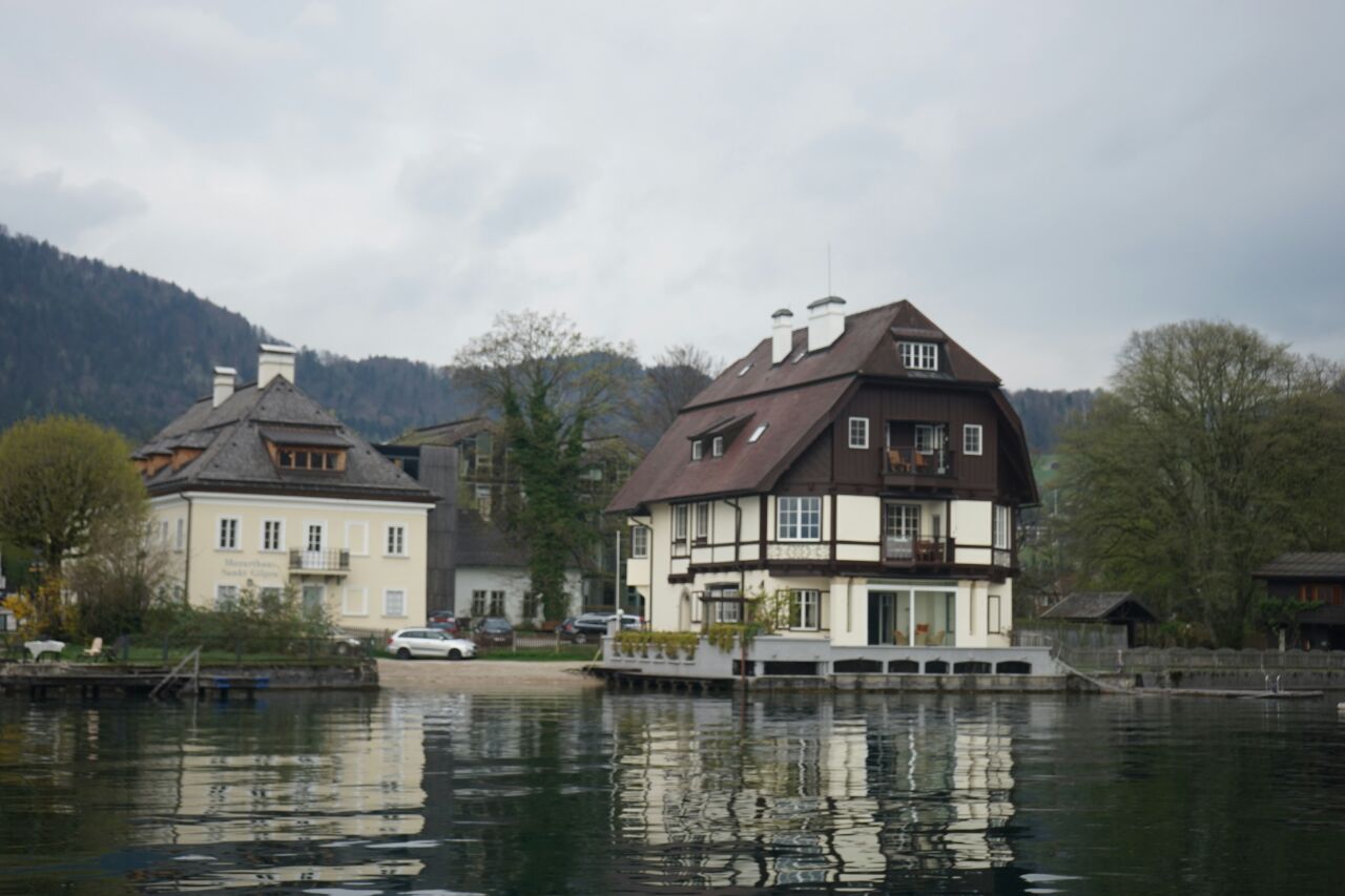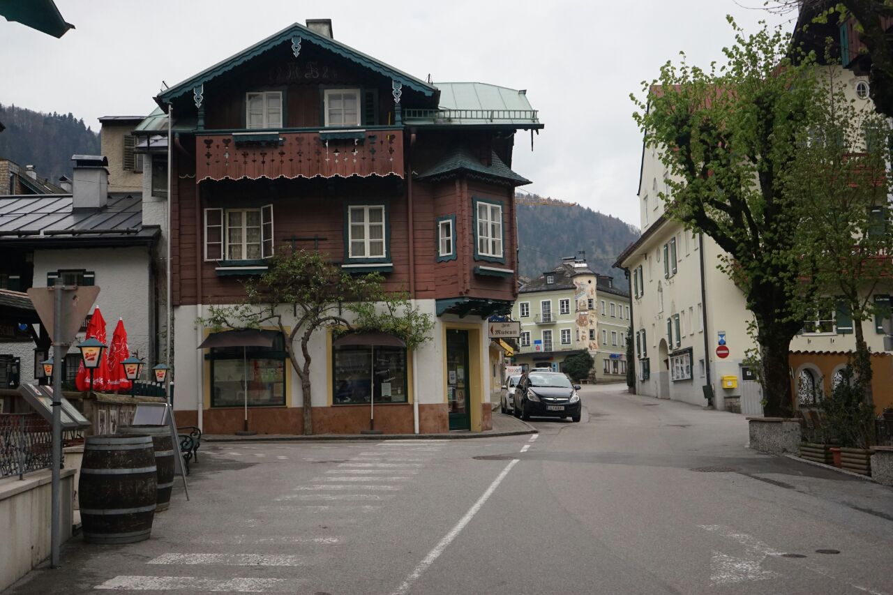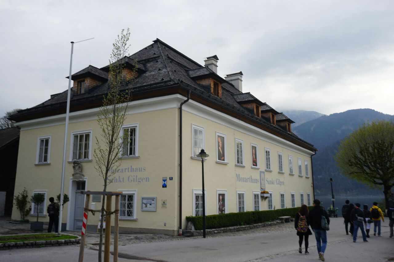圣吉尔根,沃尔夫冈湖畔,青山绿林环绕之间,一幢形态各异的小屋外墙涂上怡人悦目的色泽,房前屋后小片绿地,放置环绕的精巧花床,窗台上吊着的艳丽花篮,屋顶上攀爬着藤蔓,走在静默的街巷,每一转角都有欣喜,每一回眸处都有惊艳,美沁入小镇每处空间,身处小镇有一种不真实感觉,仿佛是在梦中和图画上才能看到寻到的世界。至于莫扎特童年住过几天的简陋房子就忽略吧。