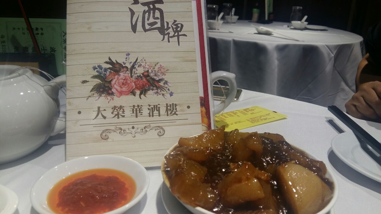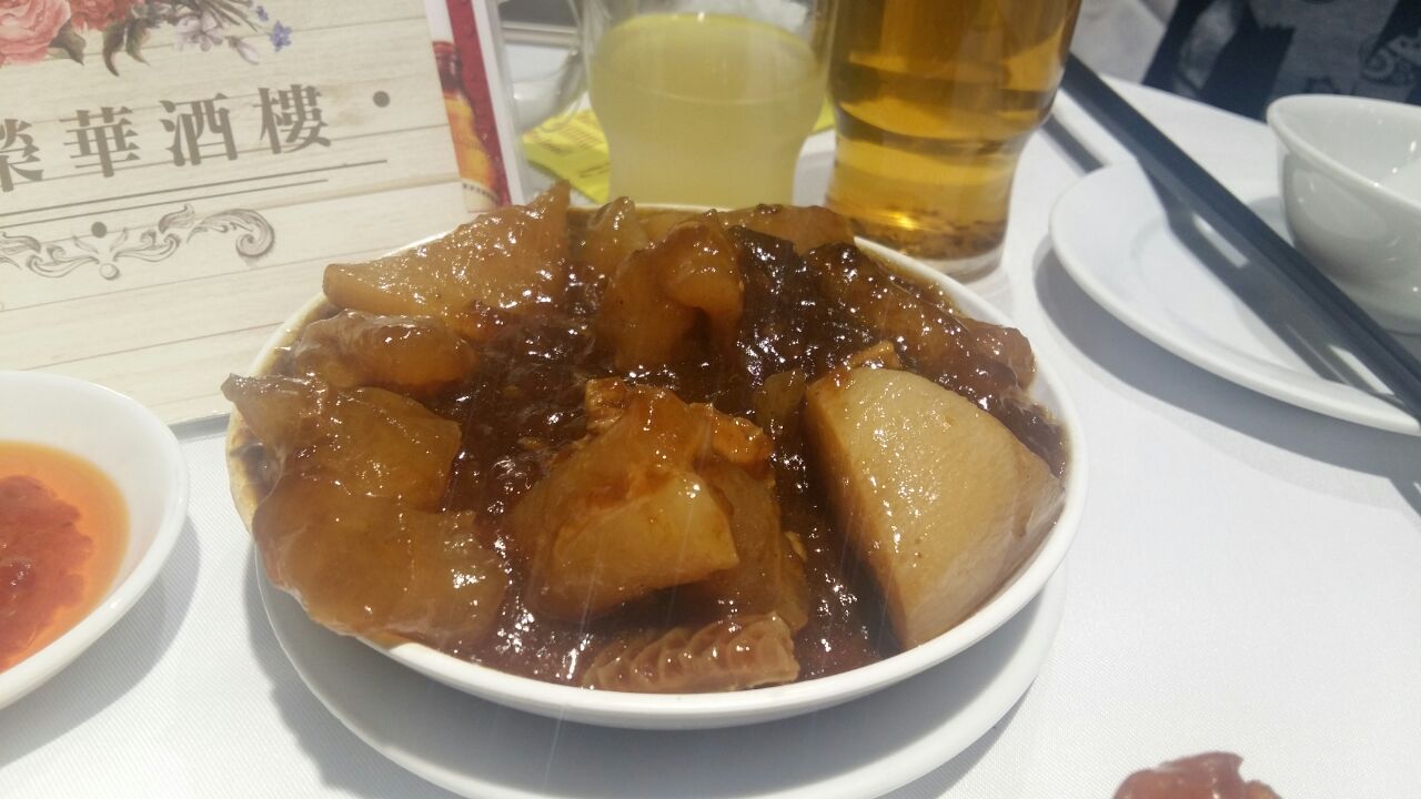 荣华月饼的店,食神韬韬主理,但它的烧鹅,并不是太好吃。返而小吃的猪手就做的不错。要说与众不同的是猪油捞饭,一樽鼓油和一樽猪油和白饭一齐上,自己动✋捞。好好味。有乡下的味道。 有传说中的九大簋,用鸡公碗装的九个菜,下次组队去吃。
