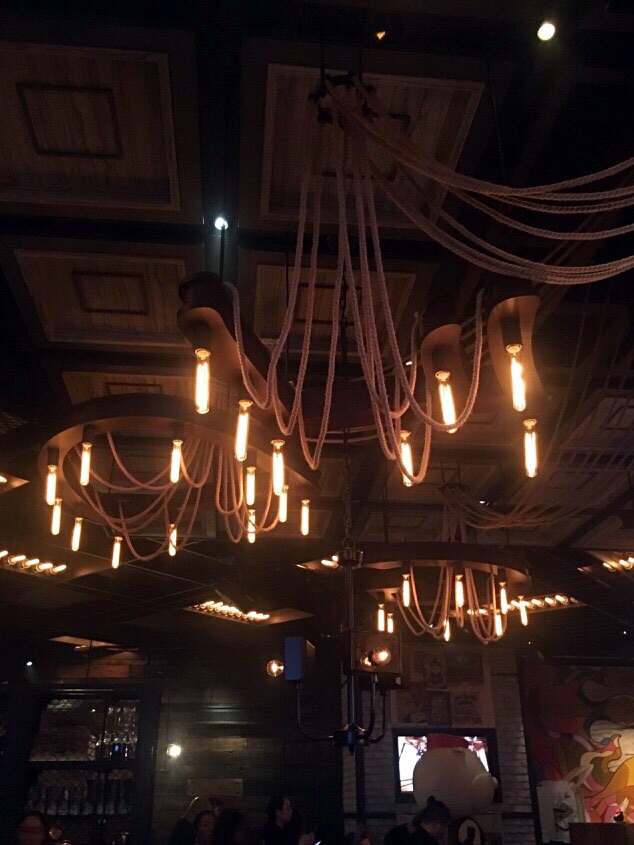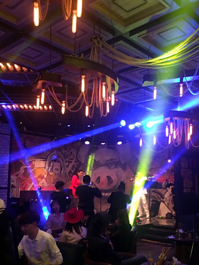 吧界酒吧在松北香格里拉一楼,进去大厅直走偏左入口,工业装修为主题,营造时尚气氛,所谓吧界也可意为八戒,里面的肉类小食都是以上好的猪肉调味制作,猪肋排猪五花等等口味尚佳,进门直走就是酒吧台,调酒师都是穿着西部牛仔的感觉,牛仔似的帽子上面印有吧界两字,左侧直走是小舞台,台上背景也是可爱的八戒形象,就连烟灰缸也是八戒的头像非常可爱,听歌品酒尝小食,还俄罗斯帅哥美女驻台,既提升了档次又不失嗨的气氛。