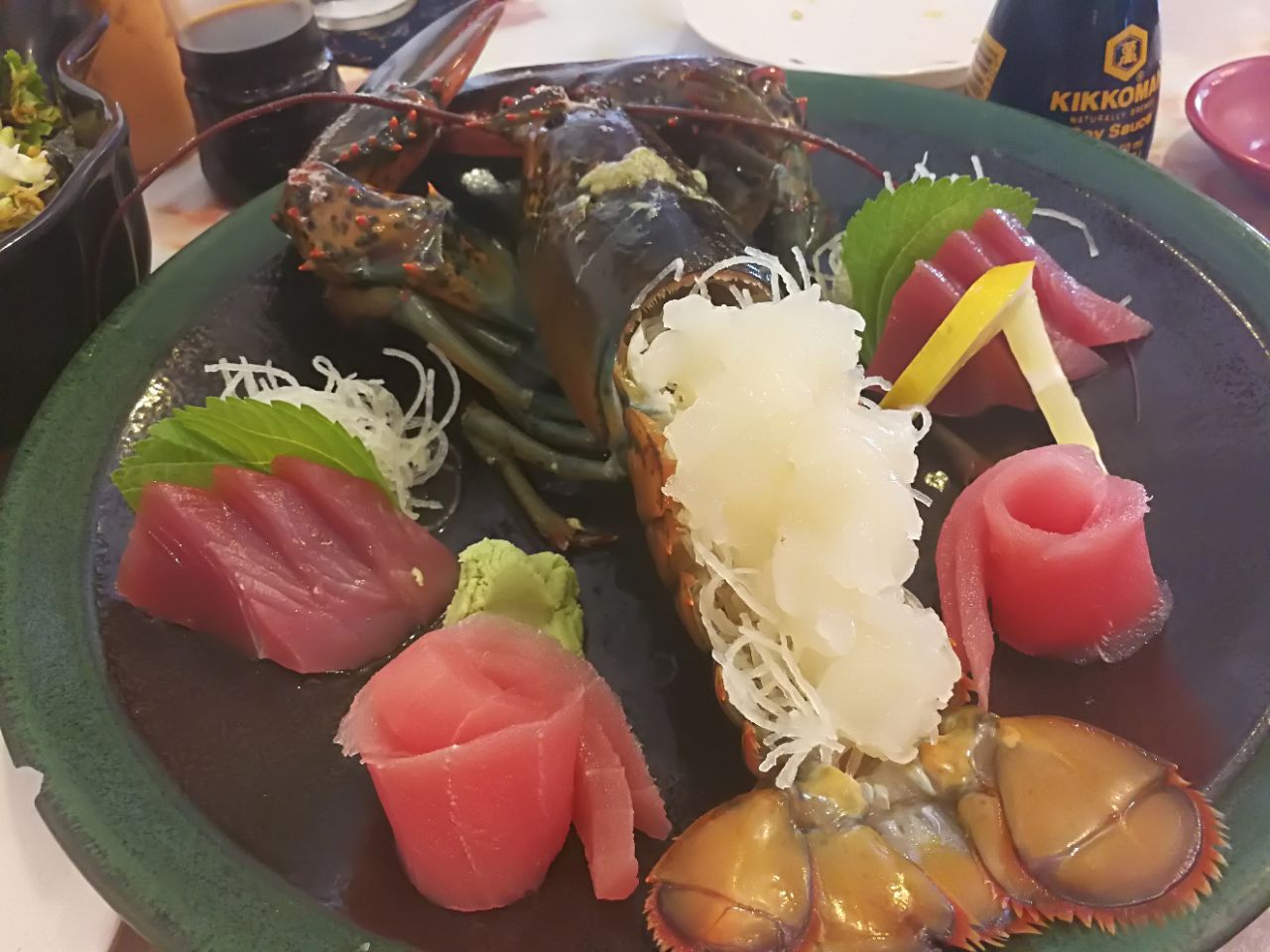 特别好吃,一只",108美元,好贵但非常好吃!金八" 龙虾头最后烧汤,也不错"金八"就在塞班市中心步行街内,有两个门,很大,很容易找! 这里"活龙虾生鱼片"特别好吃,一只"活龙虾",108美元,好贵但非常好吃! 龙虾头最后烧汤,也不错!