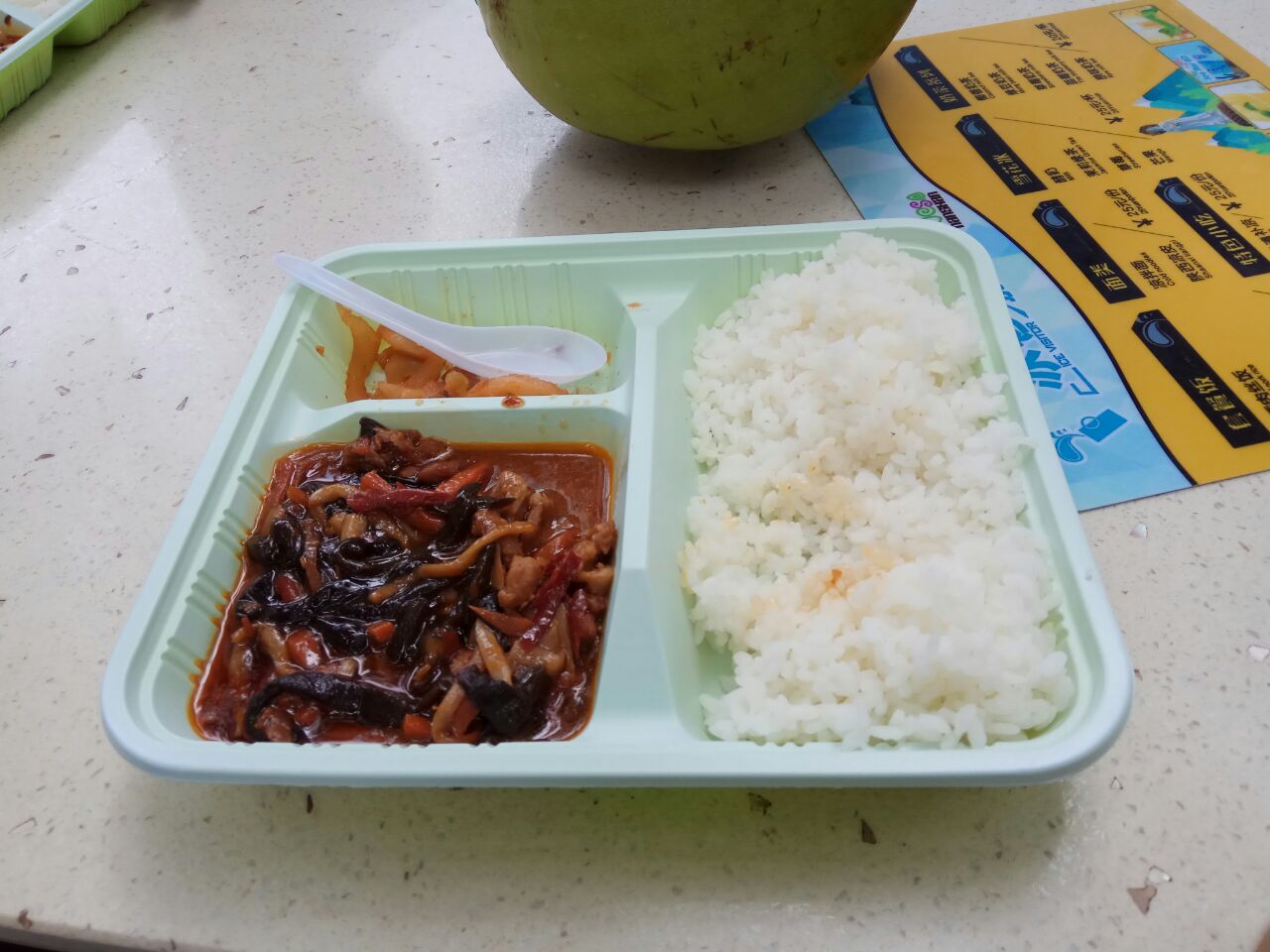 网友2017-07-24点了鱼香肉丝、红烧牛肉、麻辣豆腐,另开了个椰子,很不错。套餐经济实惠,味道不错中午在这吃了一顿,南山寺门口前面一点,下电瓶车就到。套餐经济实惠,味道不错!点了鱼香肉丝、红烧牛肉、麻辣豆腐,另开了个椰子,很不错。