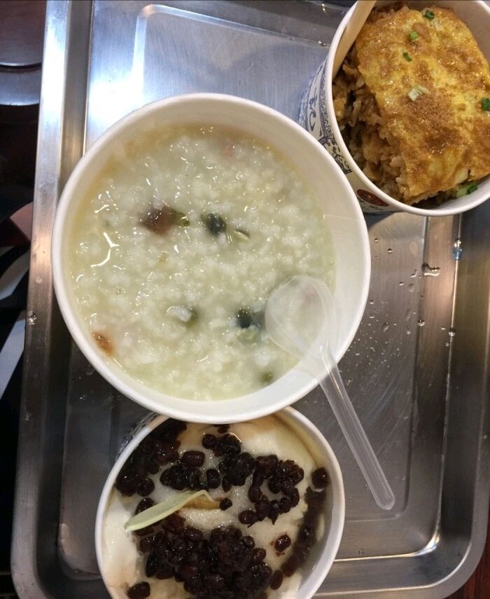 早上他们家生意非常好,装修的门面也非常新。 老字号餐饮连锁店,服务员态度一般,吃之前拿一张卡要5块押金,吃完不够的钱可以退,20块钱起步充值。 非常喜欢吃豆腐脑,点了红豆味的,味道还不错。 皮蛋瘦肉粥咸味还可以~是皮蛋粥的味道 豆皮是过早特色之一刚拿到的时候就觉得沉甸甸的。里面有肉丁,茭白蘑菇,味道是还不错的~有满满的三块。