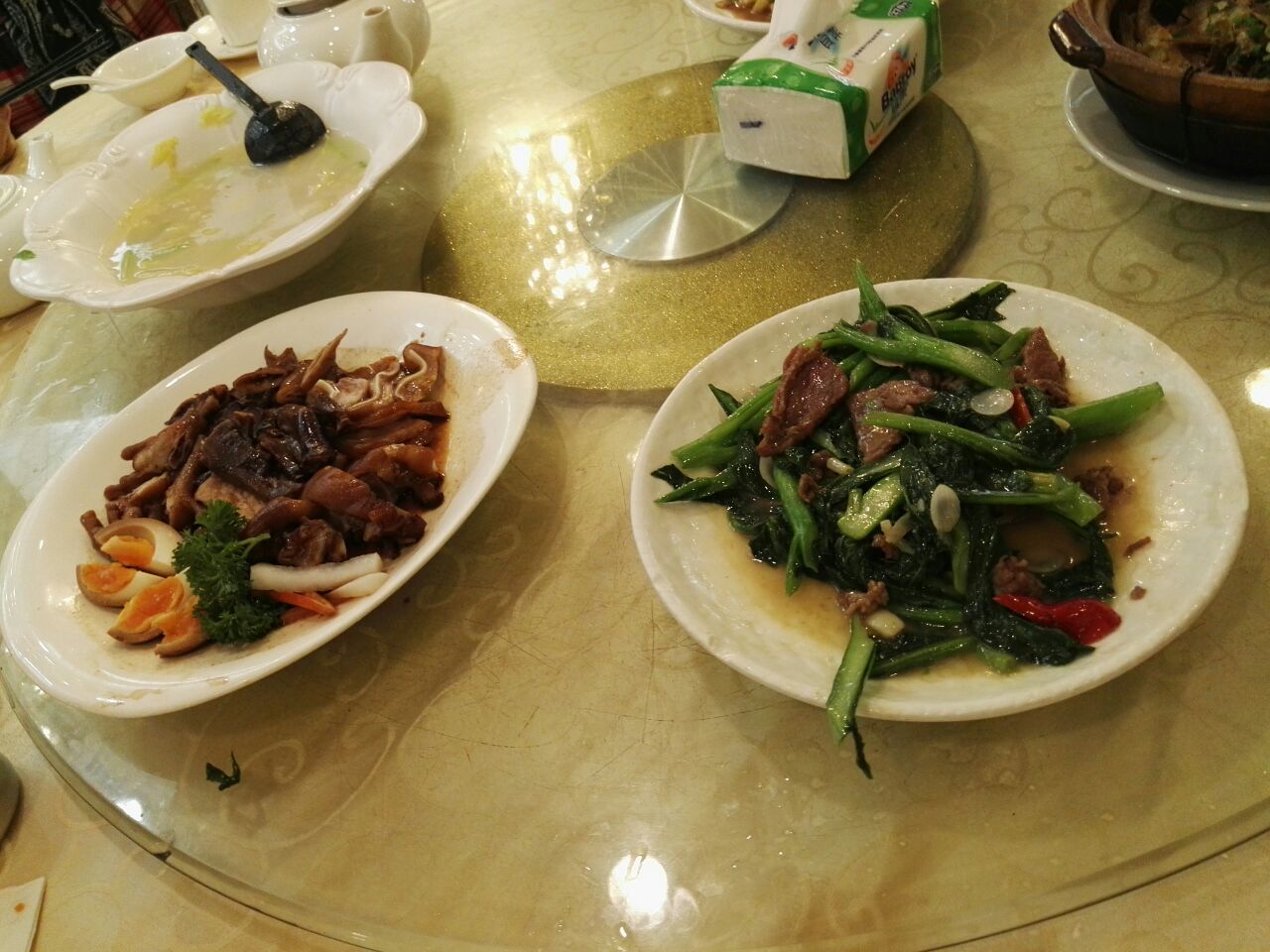 总体感觉性价比越来越低,菜品基本无进步,菜品大多味道偏咸。九十八元一只鸡有D贵了。菜心炒牛肉同埋炒牛剪就还可以,干迫粉丝煲合格,点咗八个菜六个人食370几蚊算系适合家常小聚吧。而家无论用支付宝定系大众点评埋单都冇咗优惠了感觉唔系好抵。