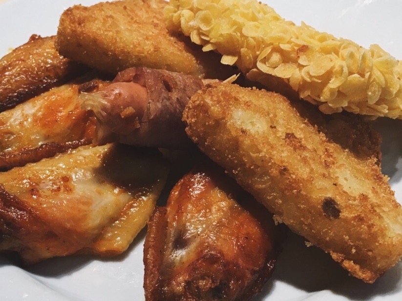 苹果派感觉一般。 扁桃仁蛋糕好评,还是很香浓的, 吃起来很有层次感,不过略甜。 总结一下好像蛋糕都偏甜一些, 相较于十几块的价格来说, 性价比还是不错的。 小吃拼盘里, 香肠培根卷 味道一般般,感觉有点油腻 香烤鸡翅 口感挺嫩,感觉味道是所有肉里最好的 炸虾排 ,外脆里嫩, 但是感觉面粉裹得有点厚而且没什么味道