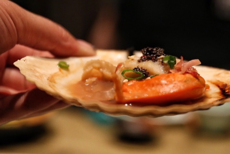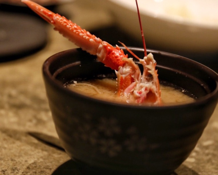 火腿三明治 当火腿的鲜香裹覆密瓜的甜爽,满满溢出的是幸福的滋味。夹起一块送入口中,“嘎嘣”一下,脆爽的蔬菜和chips在舌尖擦出了味蕾绽放的火花。 温泉蛋沙拉 五彩斑斓的蔬果,再在顶部卧上一颗煮的恰如其分的温泉蛋,从中剖开,灿黄的蛋液便缓缓流下,吹弹可破的蛋白吃的很是幼滑。拌开后,更是柔润的姿色愈撩人食欲。 昆布春鲷 “花中樱为王,鱼中鲷为尊”。鲷,常以昆布渍,以昆布的鲜味来提升白身鱼的旨味。春鲷为其幼鱼,色如樱花娇美的鱼肉,视如樱季珍品,入口甘鲜Q弹。 爱尔兰活鳌虾 数百米深海中远离污染的极地水域造就了这一人间美味。将虾剥开品尝,体验到了独一无二的味觉组合:甜、鲜、嫩、香、滑、软、糯,顿时梦幻般的感觉充盈整个口腔。 黑松露大扇贝 经过黑松露的嵌入,扇贝肉的纤维质地更加显香入味,其鲜味与黑松露的香气融为一体,送入口中,仿佛将海陆的双重滋味全都释放在了嘴里。 柑橘醋汁烤地鸡 上桌后,先淋上柑橘醋,佐以顶上的萝卜泥使这道烤地鸡品尝起来十分清爽可口,肉质滑嫩,咀嚼过后口中留恋的十足浓醇的野味。 低温鲑鱼配味噌芝士酱 粉嫩红晕的角儿由低温鲑鱼来担当。低温煮过的鲑鱼透着少女的嫣红,柔嫩到能掐出水来,搭配味噌芝士酱,蘸点着吃,别有一番风味。