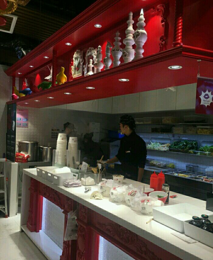 路过,打个卡,好吃的太多,排不过来啊从食品本身来讲,他家没什么特别,基本可以就算干捞麻辣烫,就是那一勺麻汁增味不少。对他家印象最深的是装修风格,其实也没什么特别,就是那个遍布四处的大红唇,真是性感火辣。路过,打个卡,好吃的太多,排不过来啊。