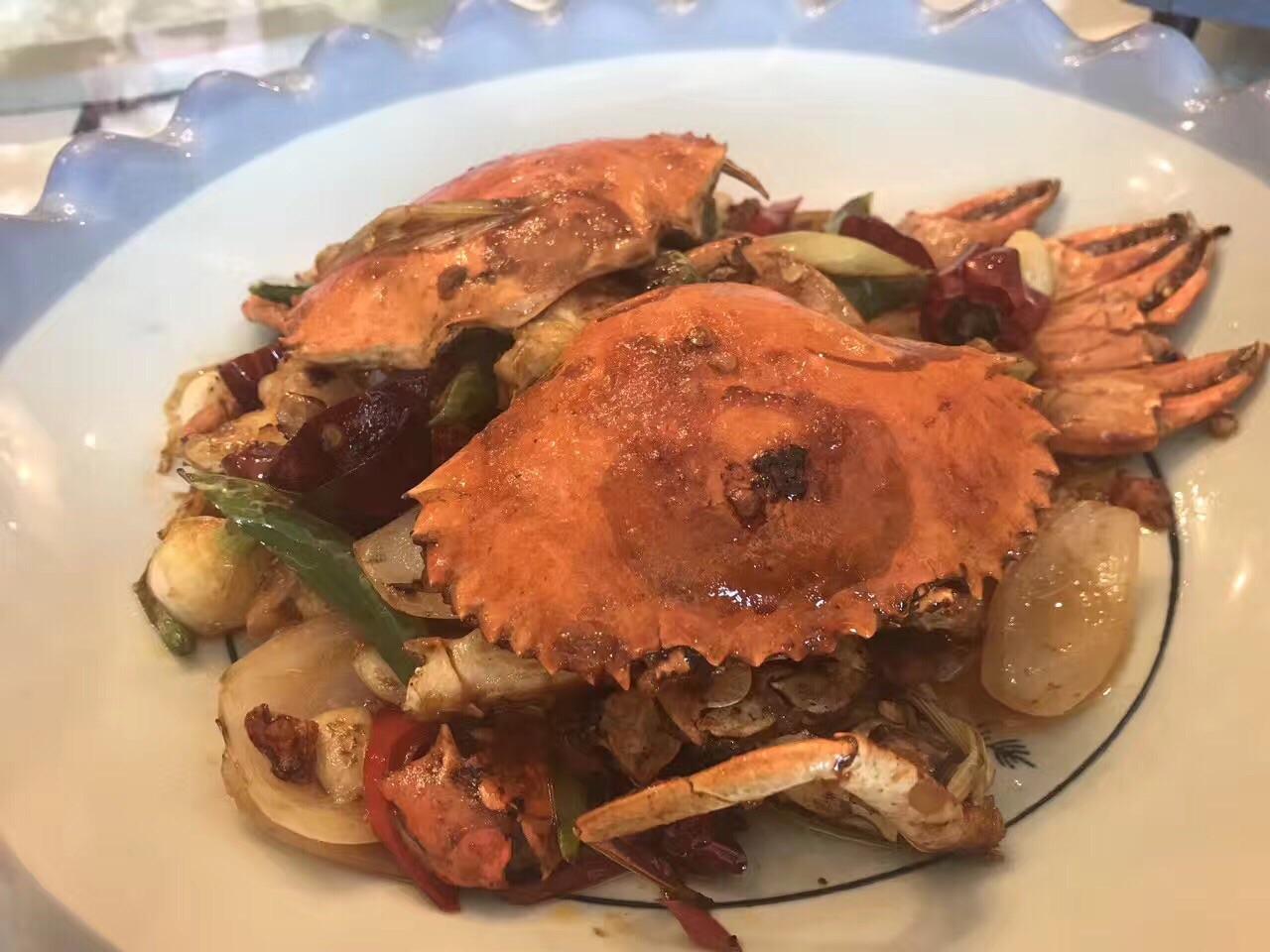 海鲜派,外层的面包很特别好吃!海鲜新鲜,处理也很到位!吃完下楼发现一楼相当喜庆,火红灯笼高高挂