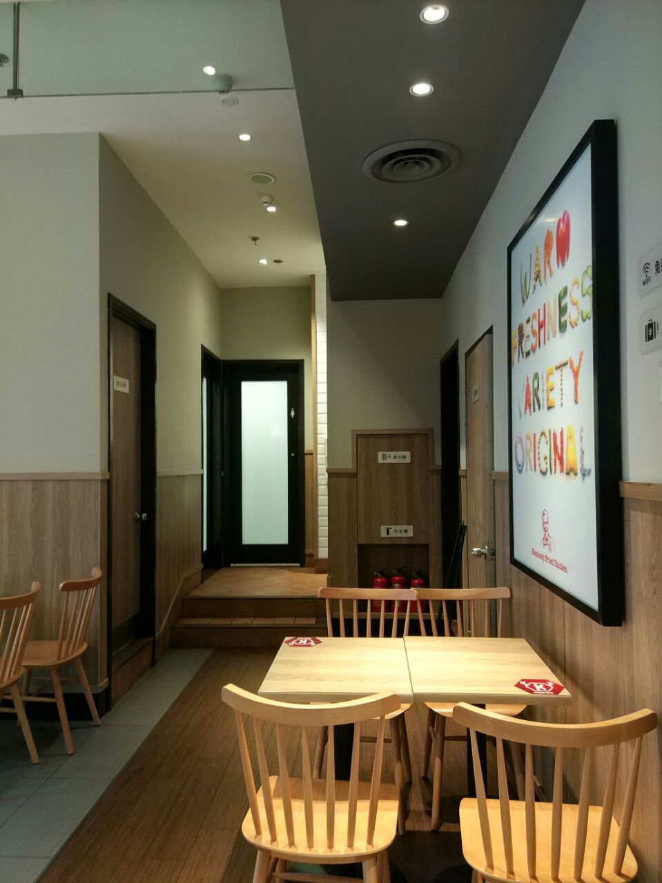 位于文化中心彩悦城一层的肯德基经常光顾,成为六日早餐的首选之地。当然旁边银河购物地下一层的那间,因为营业时间问题就不怎么去了,因为早餐时间无法开门。当然直线距离200多米就有两家肯德基也是罕见。 经常早餐时间前往,通过自助点餐的APP基本上不用等待,除非太早了刚开始有那么几分钟的等待。建议使用自助点餐,一个是方便一个是18元送东西,虽然肯德基价格比麦当劳便宜不少了,但是点满18也是挺容易的。 早餐选择多,只不过也都吃过来了,对比旁边的麦当劳肯德基发展了更符合中国人胃口的早餐,最近的饭卷就是一个典型,但是饭卷的缺点就是成型差,饭粒很容易掉出来,甚至整块整块的掉出来。所以个人更是倾向于法风烧饼(热着酥脆,凉了软酥味道都好)和各种帕尼尼,而鸡肉帕尼尼又让帕尼尼的价格能控制在10元内也是很不错的。 正餐时间段这家肯德基很忙碌,彩悦城的受众主要是孩子和家长,因此肯德基忙碌就不足为奇了。这时候强烈建议选择自助点餐,真的非常方便,因为点餐排队的人明显超过取餐排队的长度,到时候就有体会了。 环境和服务这家肯德基都是不错的,不过由于图片都是早餐时段拍摄的,所以给人展现的都是最悠闲最清静的时候的样子啦!