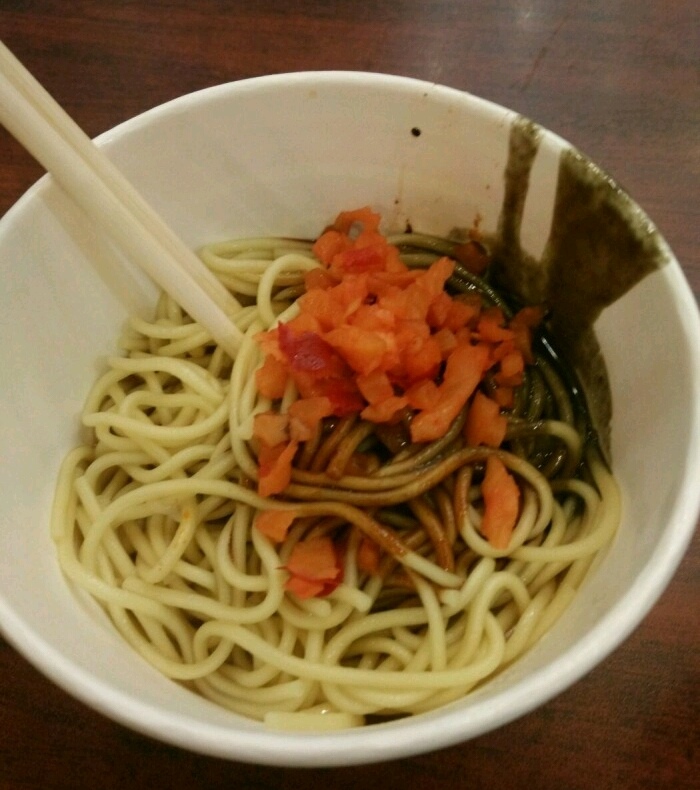 主要产品就是热干面类 还有炒饭类,饮品可以配点豆浆和绿豆汤 位子不大不小吧,有个小两层,一楼买...主要产品就是热干面类 还有炒饭类,饮品可以配点豆浆和绿豆汤 位子不大不小吧,有个小两层,一楼买票取餐 还有些开胃菜可以自己加,泡萝卜、酸豆角来点一拌 就是感觉面颜色太黑了,有点干。