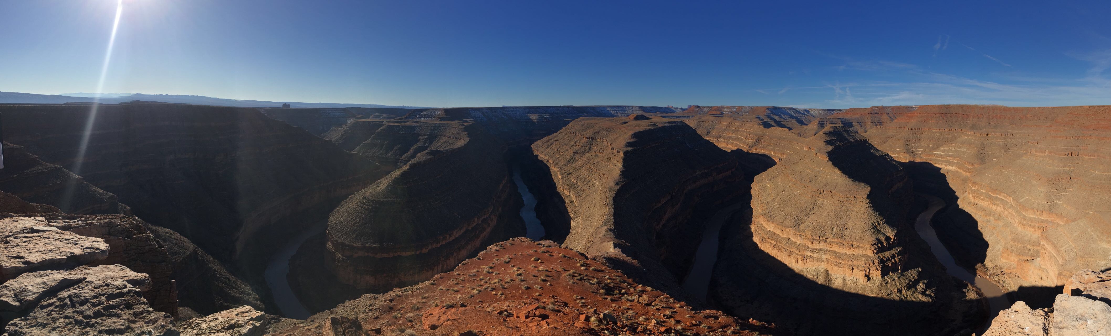 圣胡安河在这里打了3个180度的湾,从河流弯曲的难度来说大大超过了马蹄湾