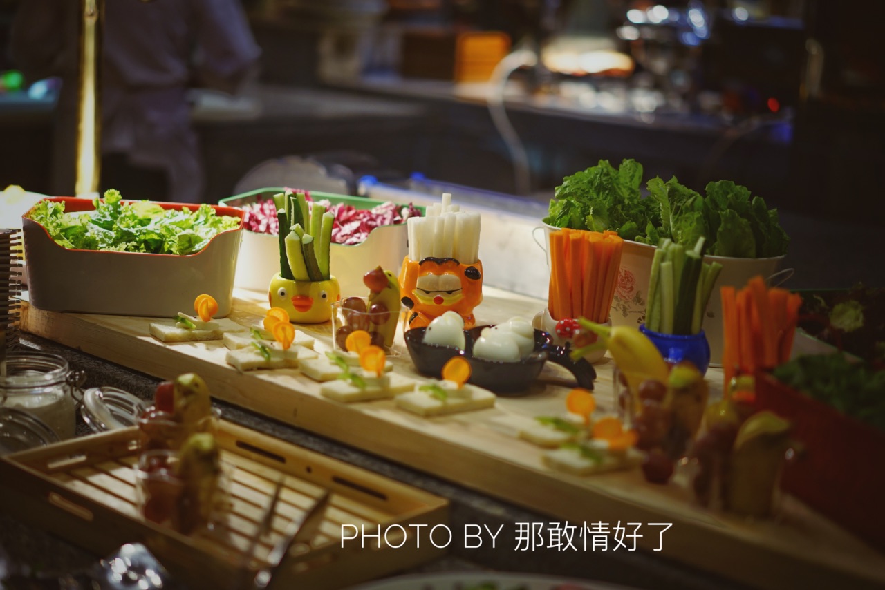 海鲜品种和量都很多,但我一个也没有吃,虽然可以让厨师加热。我吃的是儿童餐 餐品味道很好,最喜欢果汁 出彩儿的是儿童餐,儿童餐具,儿童餐品,主食水果都做成可爱的样子,连餐台都矮,孩子果真都很喜欢而且很多。 价格不低418一位,6岁以下免费,含一个孩子两小时儿童乐园,可以让一个大人陪着进去