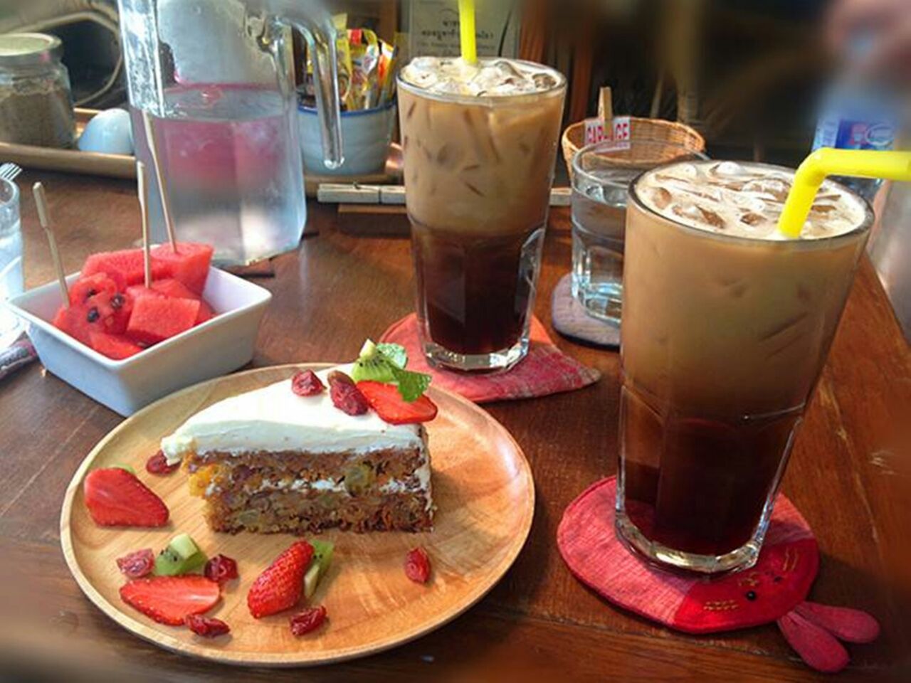 网友2017-07-31推荐耶奶和香蕉pie,冰咖啡。像星巴克一样提供各种咖啡饮料,美味的蛋糕和pie这是一家蛋糕房,有点不好找,环境很好,在一个鸟语花香的小院子里,本地人很多,外面的座位就是热点。像星巴克一样提供各种咖啡饮料,美味的蛋糕和pie。推荐耶奶和香蕉pie,冰咖啡