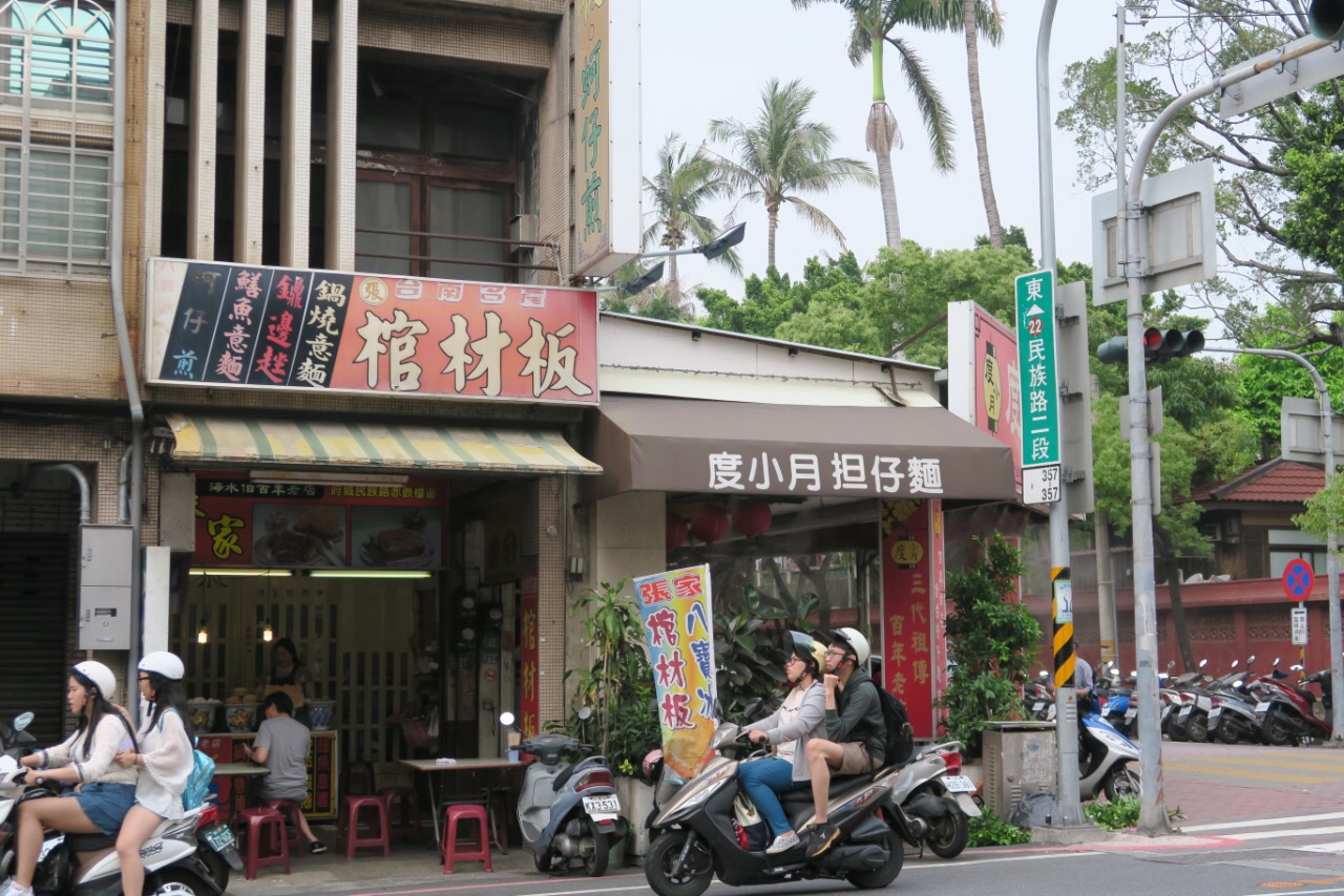 棺材板是台南人对于中西餐的一种特殊的结合的吃法。是将厚厚的吐司中间挖空过后略微的炸过,然后填充进去勾芡到很浓稠又甜甜的汤汁,混合了鸡肉粒豌豆胡萝卜玉米粒,感觉又像要有点儿在吃法式浓汤似的。但是吃到最后的精华是在于那个炸的脆脆的吐司的外皮。里面是软软又甜甜的,然后外面是脆脆又香香的,总之是很特殊的台南吃法,在台湾别的地区都没有的这种东西。
