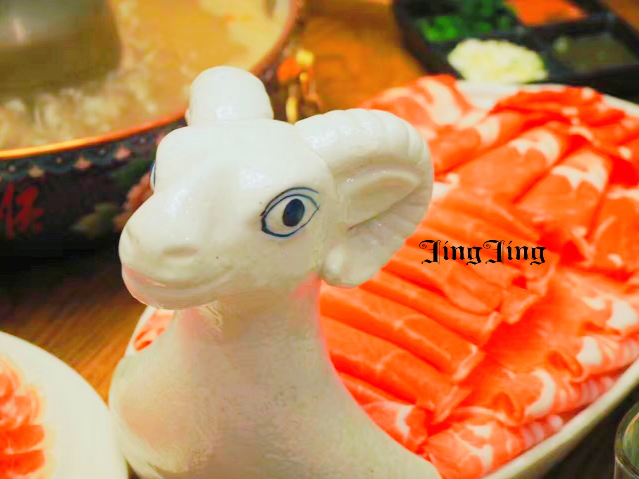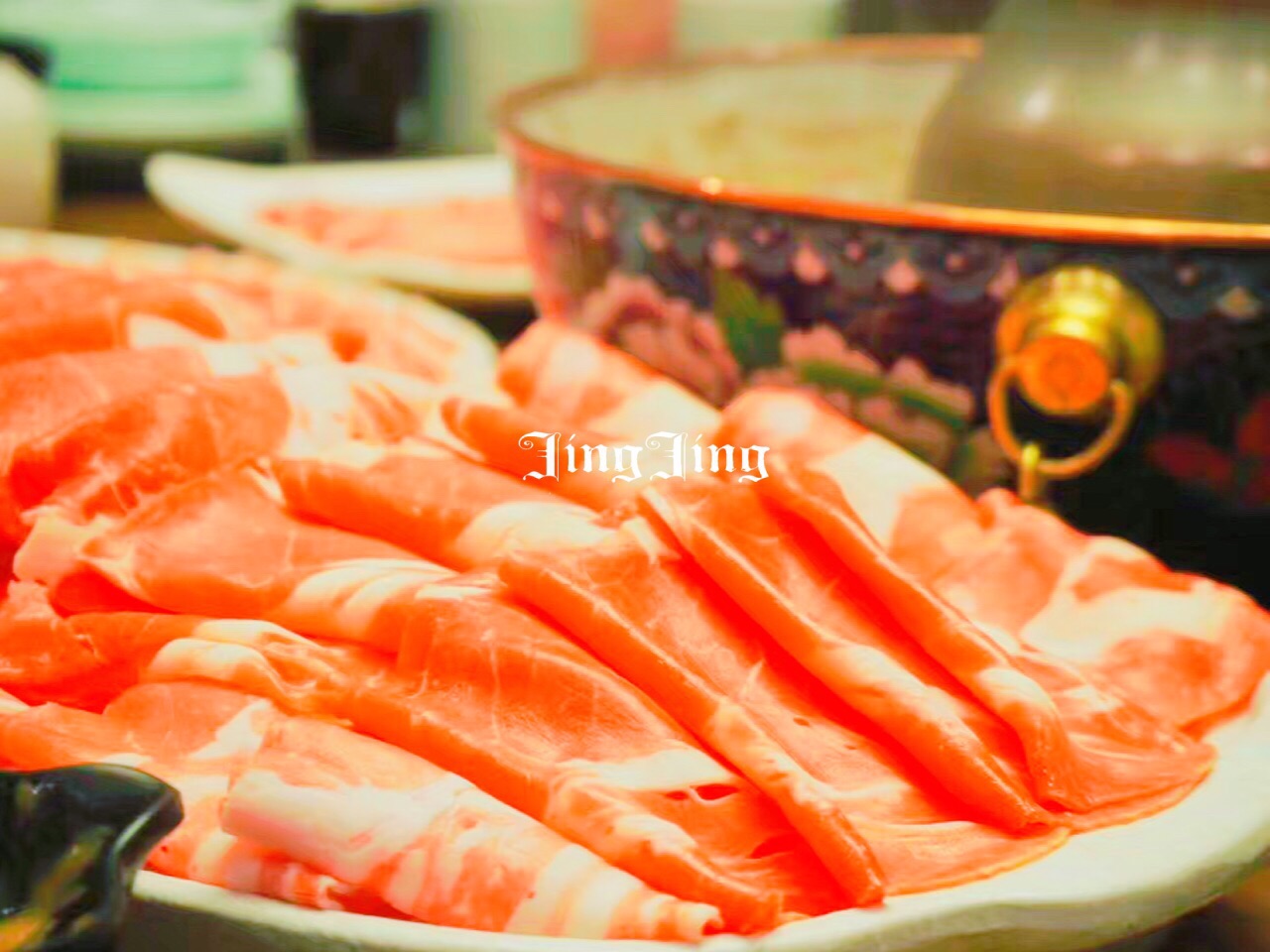他家景泰蓝的铜锅可不只是漂亮的花瓶哦,良好的通风设计,吃火锅的时候闻不到一丝炭味。先涮肥一些的肉,比如羊尾,先肥肥锅,再涮瘦肉,这样一来才会肥肉不腻瘦肉由于清汤锅底为并无多余味道,调料不可或缺。 ☞ 调料:以麻酱为主的7种调料,不散不泄不粘碗,光有酱料还不够,葱花香菜韭菜花也得添上。葱花尤其讲究,剥皮的葱白劈丝再切末,细腻而能保留葱汁,对体鲜功不可没。 ☞ 羊肉片:肉质细嫩,不含膻味。羊肉片刀工精美,肉片薄如纸,软如棉,肥而不腻,瘦而不柴,一涮即熟久涮不老。 ☞ 驴打滚:老北京传统小吃之一,驴打滚原名叫豆面糕,传说是慈禧最爱吃的食品之一。下午茶拼盘式的装盘,煞是好看。身材胖胖软软,全身豆面香气袭人,十分讨喜,香甜软糯的口感,咬一口整个人绵软起来。 这里不仅有老北京火锅的羊肉、炸豆皮、驴打滚、羊腱子、热死羊肉,还适宜的推出了小龙虾,又能涮火锅又能吃小龙虾,何乐而不为?