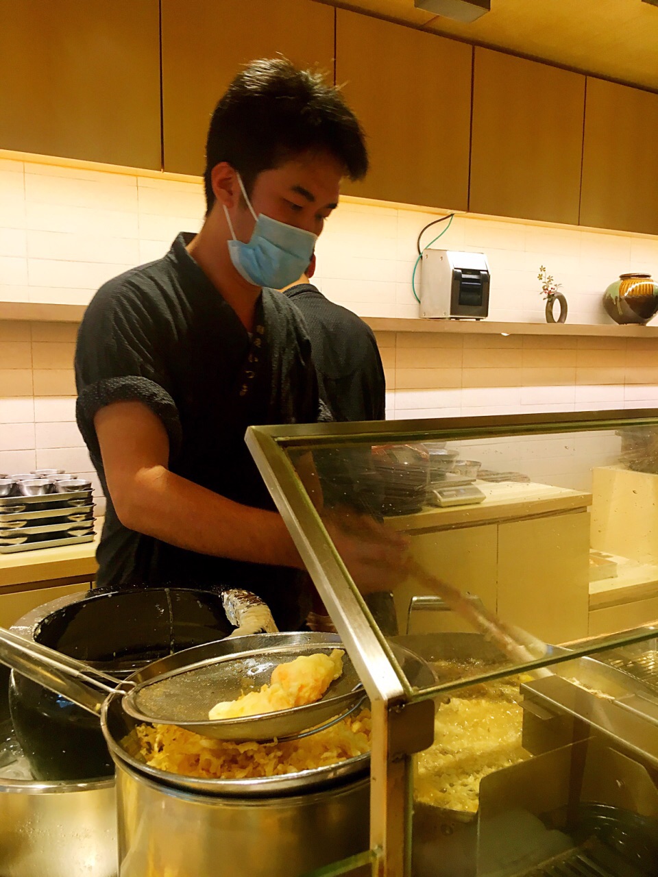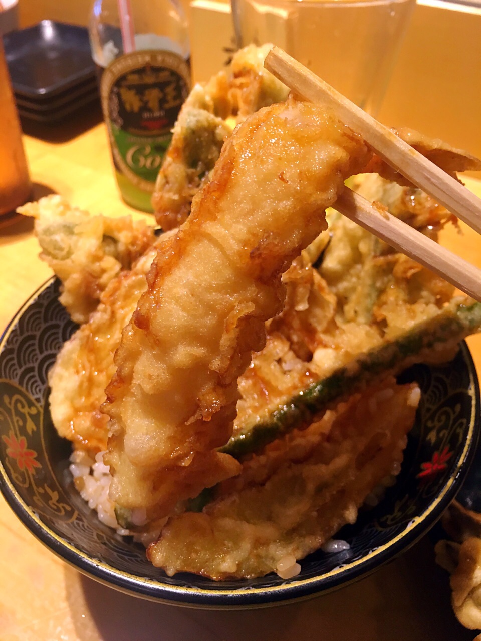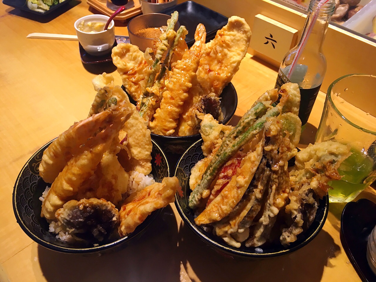 新加坡最好吃的天妇罗(之一),性价比最高的天妇罗(没有之一)。 ✔️蔬菜丼12.9新币,有南瓜、香菇、茄子、莲藕等8片天妇罗。特殊丼13.9新币,有2片炸鸡、2片炸虾、1个半熟蛋和4片蔬菜天妇罗。总的来说是蔬菜丼更好吃,鸡肉炸的太老,炸虾也一般,不如蔬菜天妇罗出彩。最喜欢的是番薯天妇罗。 ✔️每个丼都有味增汤和茶碗蒸,桌上还有腌制过的蔬菜凉菜随便吃。茶碗蒸很滑很嫩很特别。 ✖️绿茶可乐3.8新币,几乎没有绿茶味,就是很普通的碳酸饮料,卖这个价格真的太过分了。强烈不建议点。 ✖️因为是现炸,操作台就在面前,有油烟味。一整碗炸物吃着很腻,最后我并没有吃完,但是同行的小伙伴们吃的很开心。 这家店只收现金,平时很多人排队,建议在营业时间前就到那边提前排队。