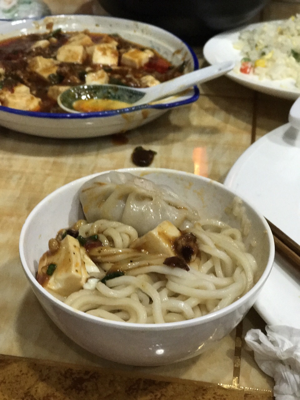 味道很正!饺子馅薄肉足!麻婆豆腐辣的过瘾!水煮牛肉味美爽口!拉面劲道!