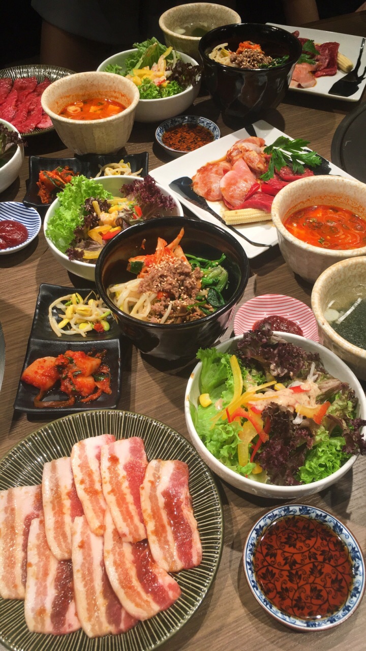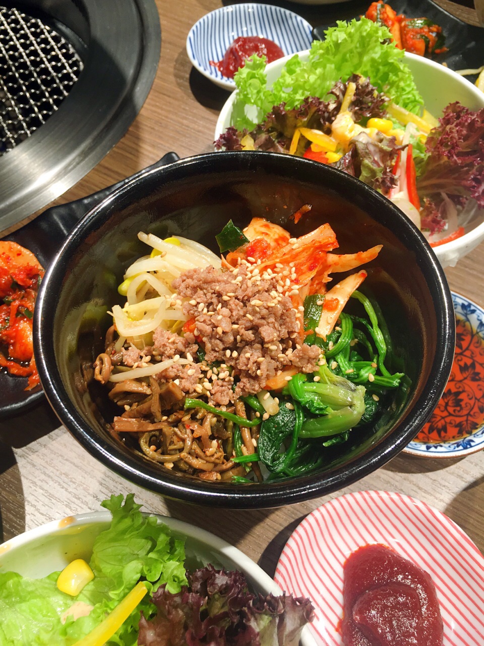 来自东京、以和牛烧烤出名的平城苑,晚餐单点人均100新币,14.5至36.9新币不等的午市套餐的性价比就高多了。 ✔️炭火烤的和牛的脂肪被融化,蘸一下特调酱汁去一点油腻、添一点味道。最好不要烤的太老,咬一口嫩嫩的和牛还带着肉汁,再来一勺白米饭就很好吃了。 ✔️推荐每天限量15份的16.9新币套餐,包括一盘A5和牛rib eye、澳牛harami、猪脸肉、鸡腿肉的烤肉拼盘,韩式拌饭、蔬菜沙拉、泡菜、泡菜汤和甜品(北海道牛奶布丁)。