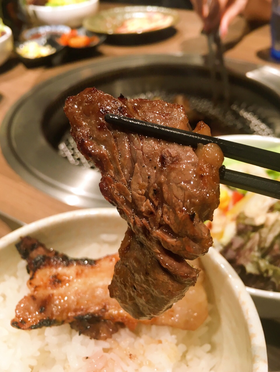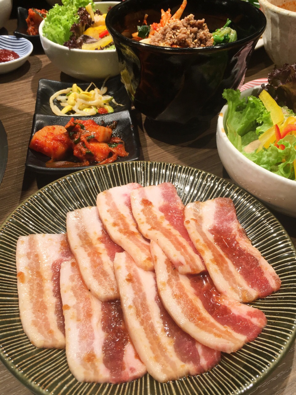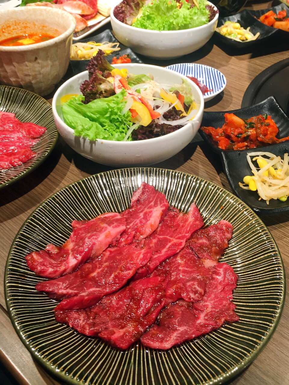 布丁)。 午市套餐的价格区别主要是因为肉的种类和品质上的区别,比如和牛烧烤套餐在24.9至36.9新币不等,五花肉烧烤套餐只需14.5新币。每份套餐包括白米饭、海带汤、蔬菜沙拉、泡菜。每一份套餐的肉给的还蛮多的,不小的一盘全是肉。五花肉烤起来很好吃啊,也并没有想象中的油腻。