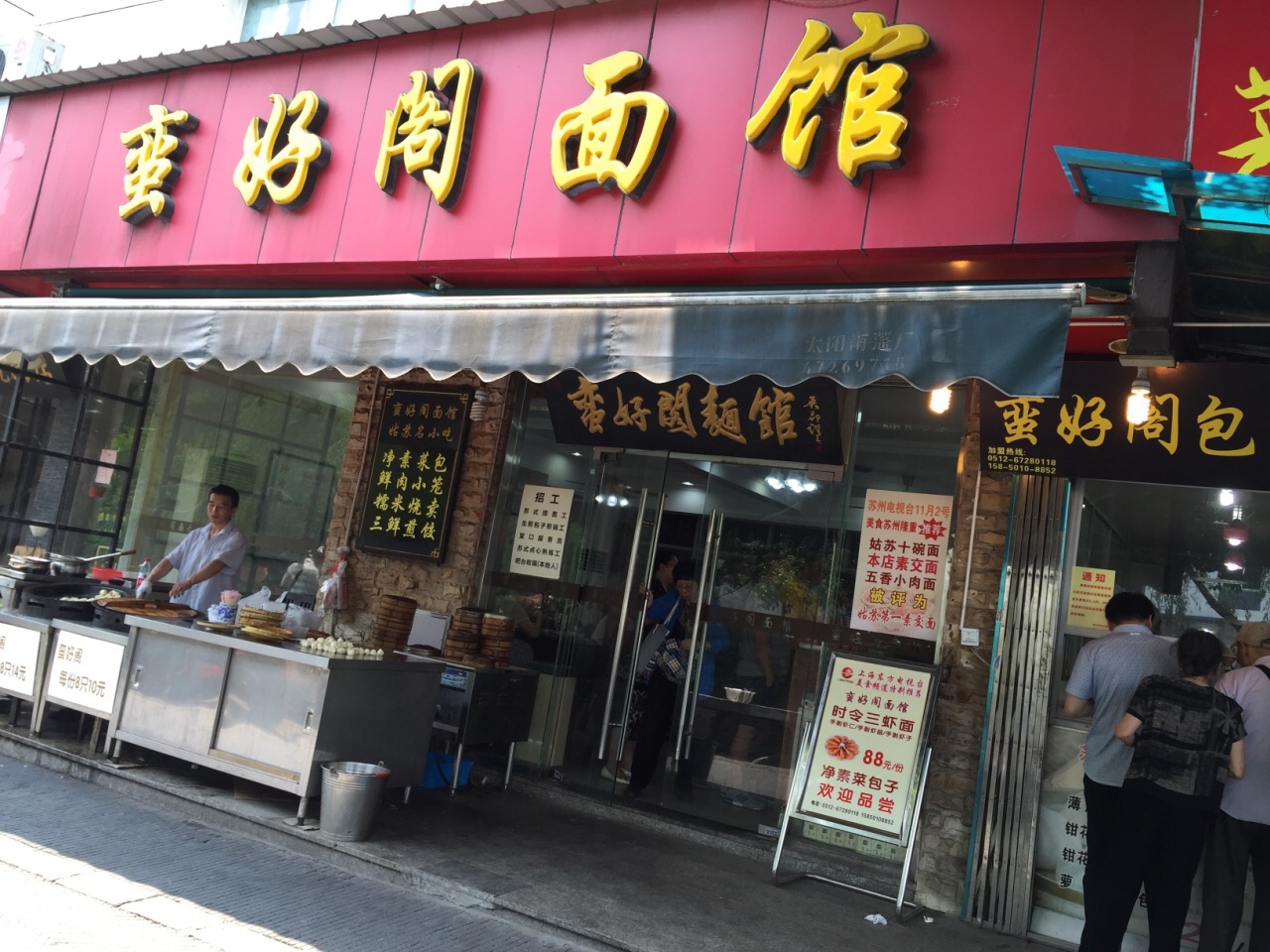 古朴的苏州特色餐饮店,生意非常的好,特别是门口的包子,大多数是本地人过来吃的。量非常地足位于观前街附近的井巷,边上有条小河。由于就在入住的酒店楼下,所以每天都去吃早餐。古朴的苏州特色餐饮店,生意非常的好,特别是门口的包子,大多数是本地人过来吃的。量非常地足。所以不必点太多