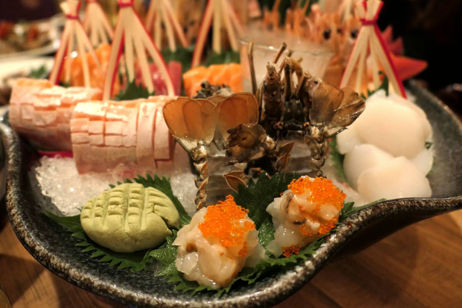 以前只知道江桥,觉得已经很远了。现在朋友买新房子买到了华侨城,才知道新开发出来了这么一个地方。意料之内的路远、空气好、地方宽敞,意料之外的人多、车子多、商场林立。作为搬家的主要苦力,晚饭必须得吃点好的!地主也很自觉的选了一家远近闻名的日料店来犒劳我们~ 这家店地理位置还是不错的,就在华侨城(家乐福)的对面,靠着河边,楼上的人在吃饭,河里的人在划皮划艇,优哉游哉~环境也不错,有大厅的散座(团购只能在大厅)也有包房,厨房是开放式的,菜单也高高挂着,一目了然~ 海鲜的内容还是相当丰富的,牡丹虾、海胆、烤大虾、长脚蟹、羊排、牛排、牛舌等等,喜欢吃生的和喜欢吃熟的人都被满足了~个人最喜欢的是牡丹虾,个头大不说,肉质也是超级嫩的,用筷子从侧边插进去,拉着尾巴一转就能完整拨出来啦~当然,作为芝士控,芝士焗蟹宝和芝士焗大虾也都是我的爱~完全值得一试,不输市区的~