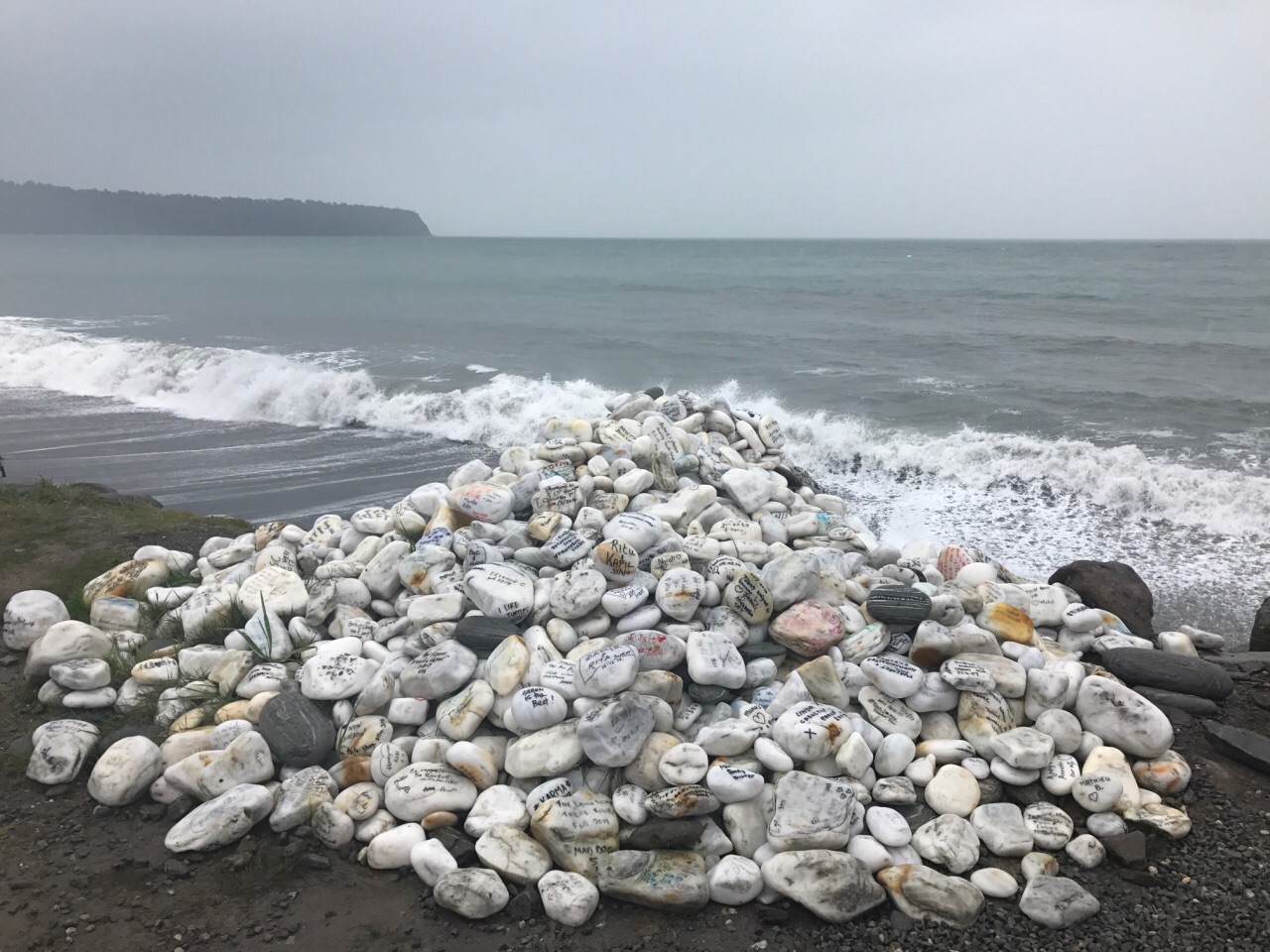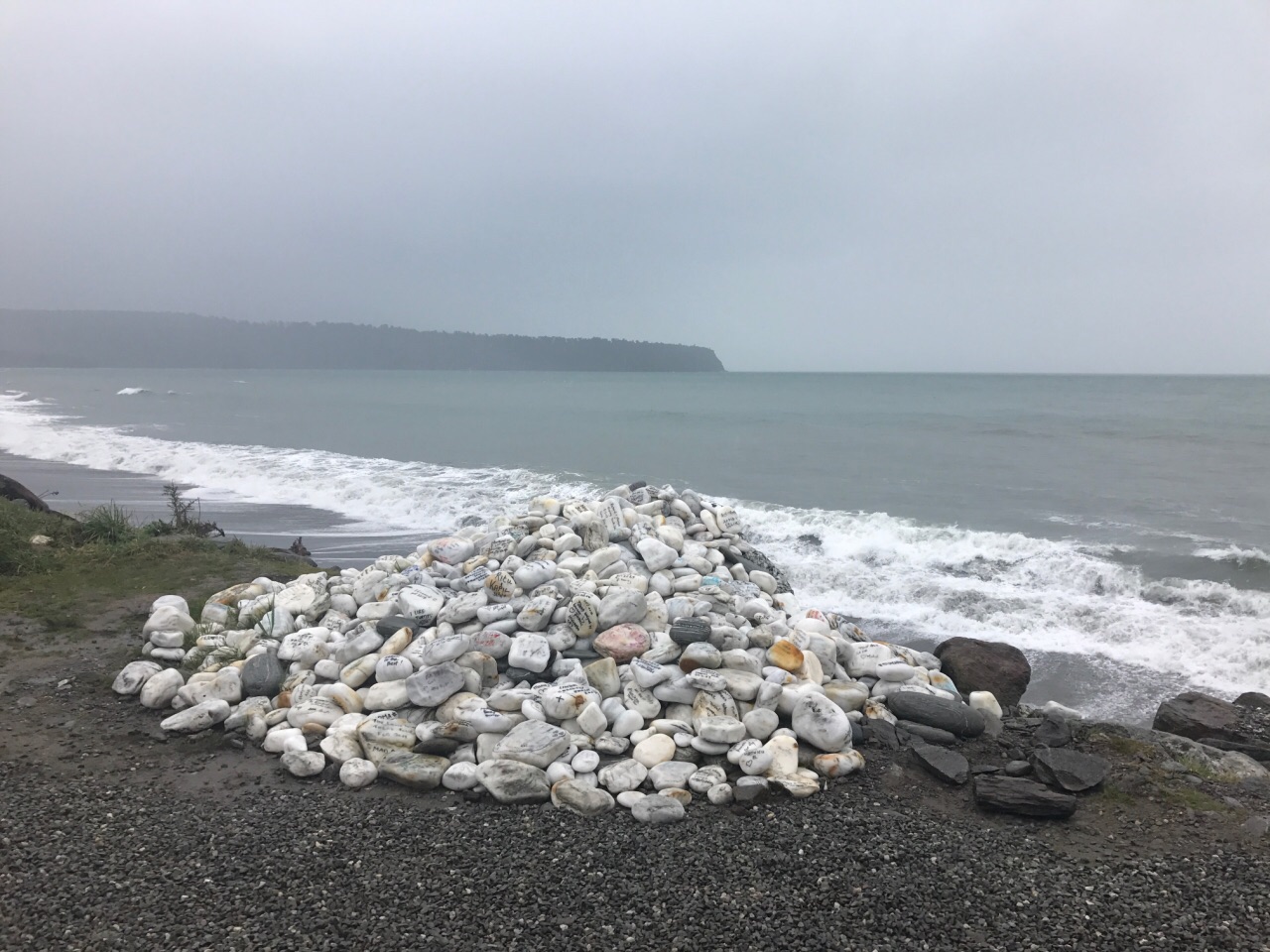 一路继续行驶,来到了西海岸的布鲁斯贝,这里有名的爱心石,石头上都写满情话一路继续行驶,来到了西海岸的布鲁斯贝,这里有名的爱心石,石头上都写满情话。我们去的时候正好下雨 乌云密布 海景都看不到 希望下来会是好天气