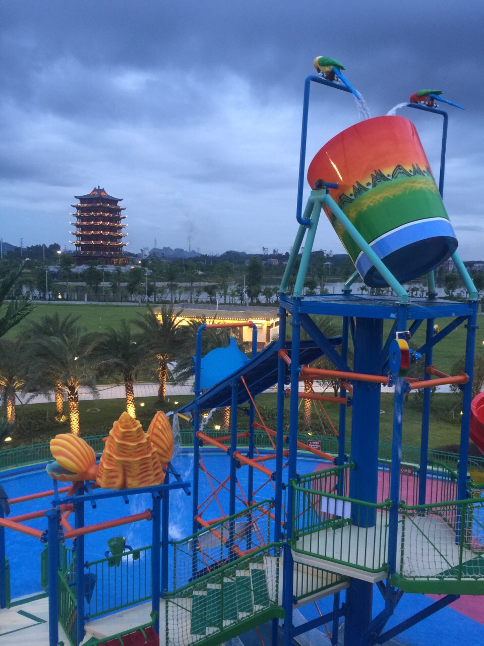 水上乐园冲浪区有灯光和音乐,舞台还有表演,超嗨!有好多儿童乐园