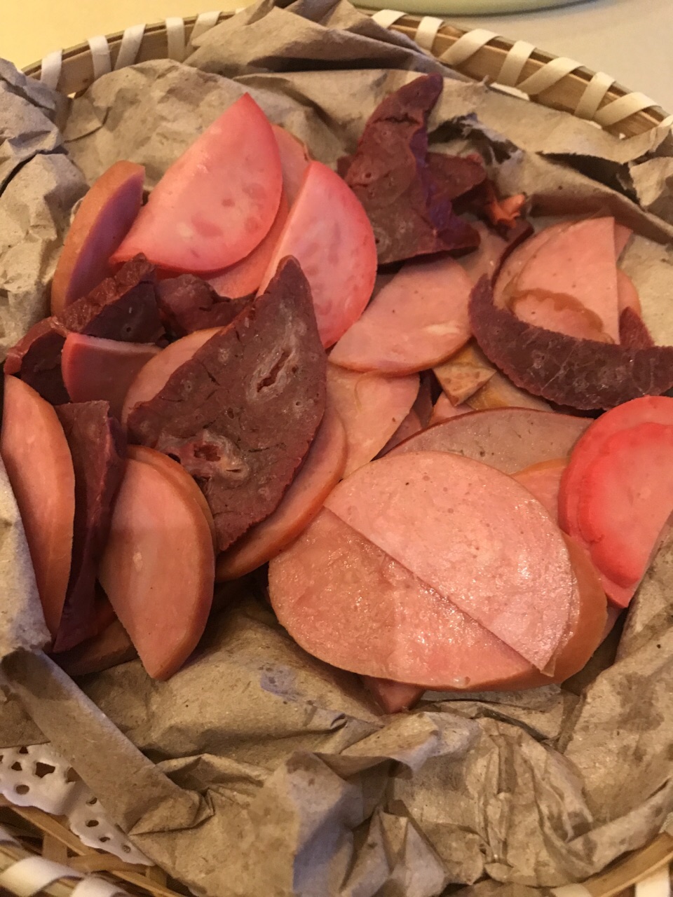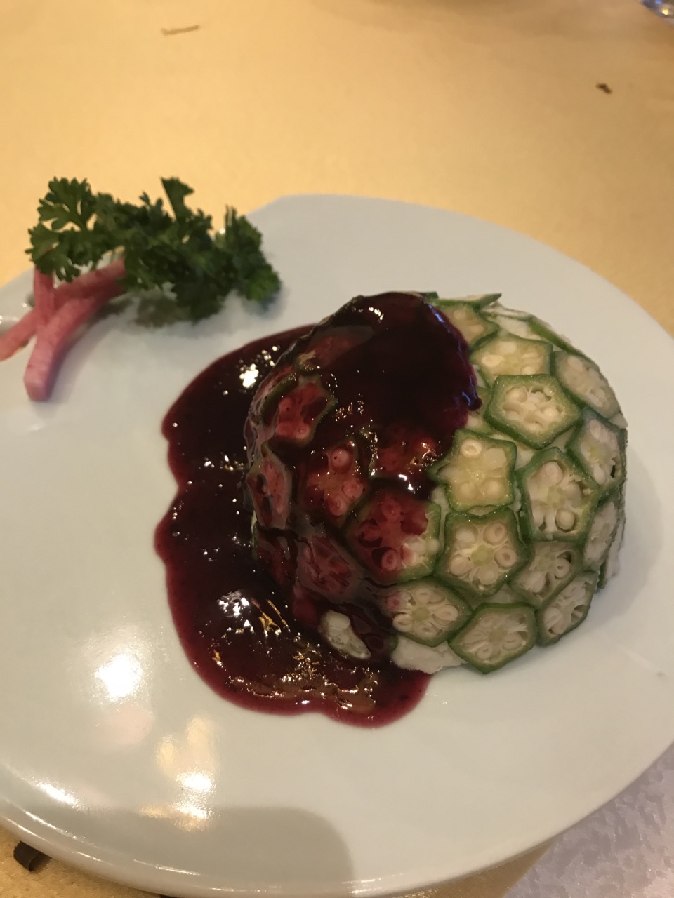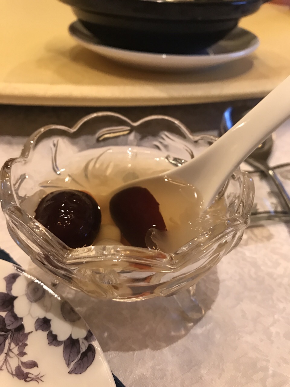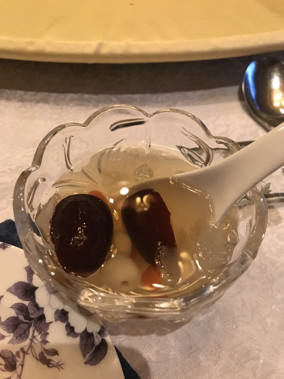 安坐在水上公园里,环境自然不用说。都是天津菜,味道竟然还都不错,第一道白菜蜇头超乎意料的好吃,只是白菜都是菜根,不合我意,还是热的,好吃好吃。秋葵那道凉菜外面是一层薄薄的秋葵,里面是山药泥,也很好吃。还有熏田鸡腿好好吃,第一次吃熏的,味道很辣,爽。