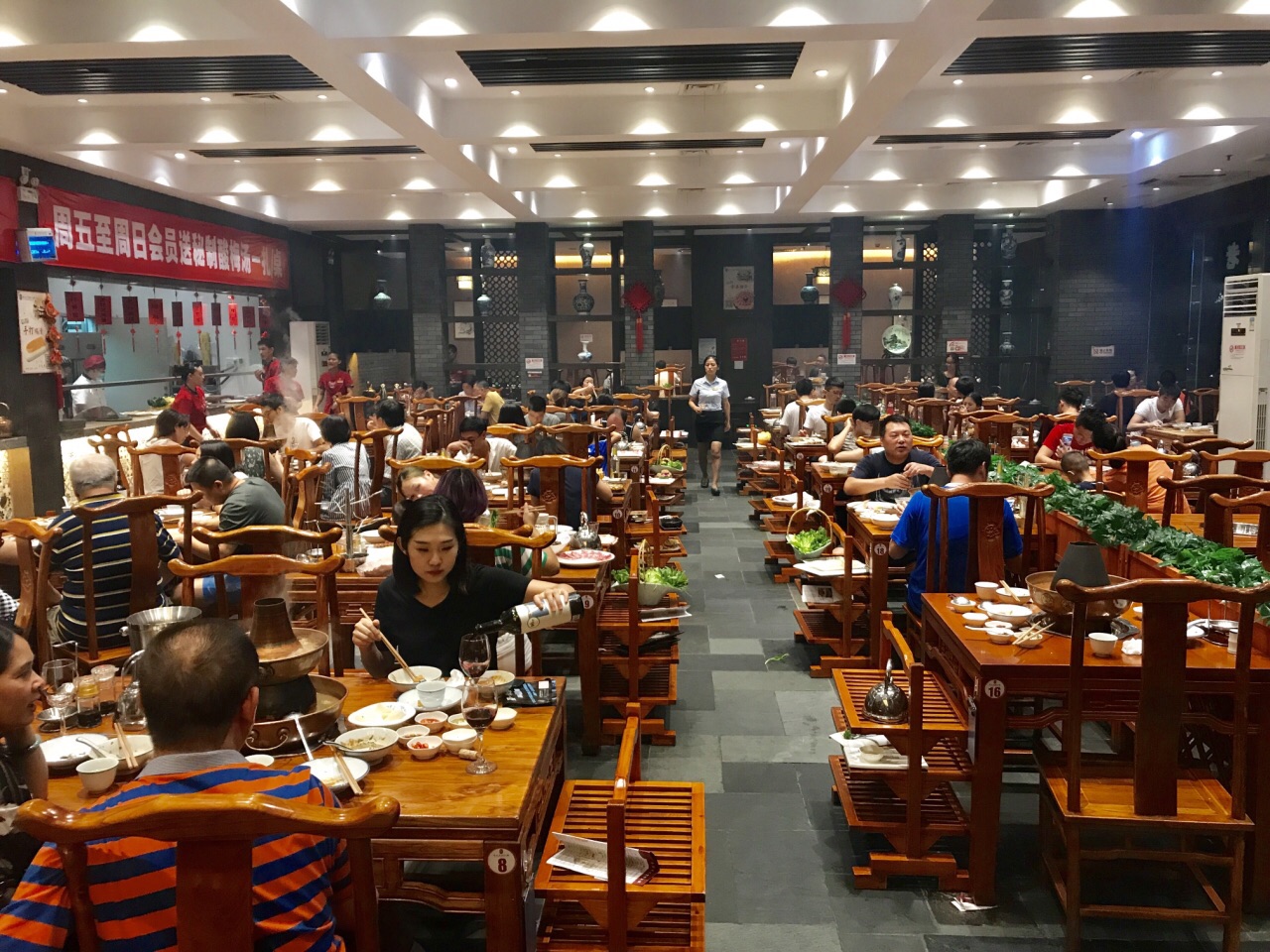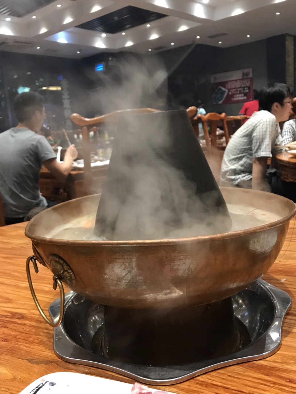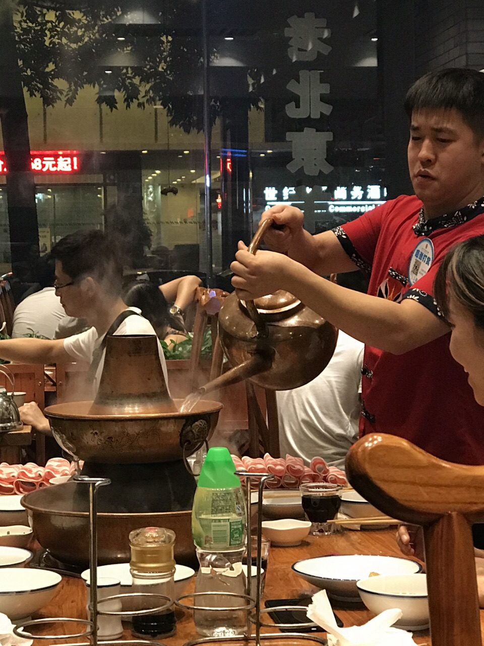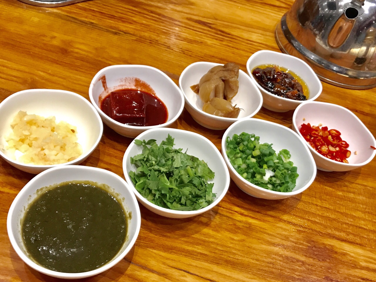 这家经常从门口路过,这次进来试试。 门口能听见几只蝈蝈的叫声,很有北京人的气息。估计是从北京带过来的,因为广东没有这种鸣虫。 大堂很大,就餐的人很多,生意很不错。我点的是手切羊肉个手切外脊,肉都很好。 调料是北京涮羊肉传统的麻酱料,免费配了8种小料,韭菜花和腐乳是要加的,其实这八个小料外,还可以加一点陈醋…… 火锅是铜锅,水开的不错。 先吃肉,最后再煮豆腐等,豆腐飘起来就可以吃了…… 小建议:总体满意,夏季空调要再足一点,排风再好点。