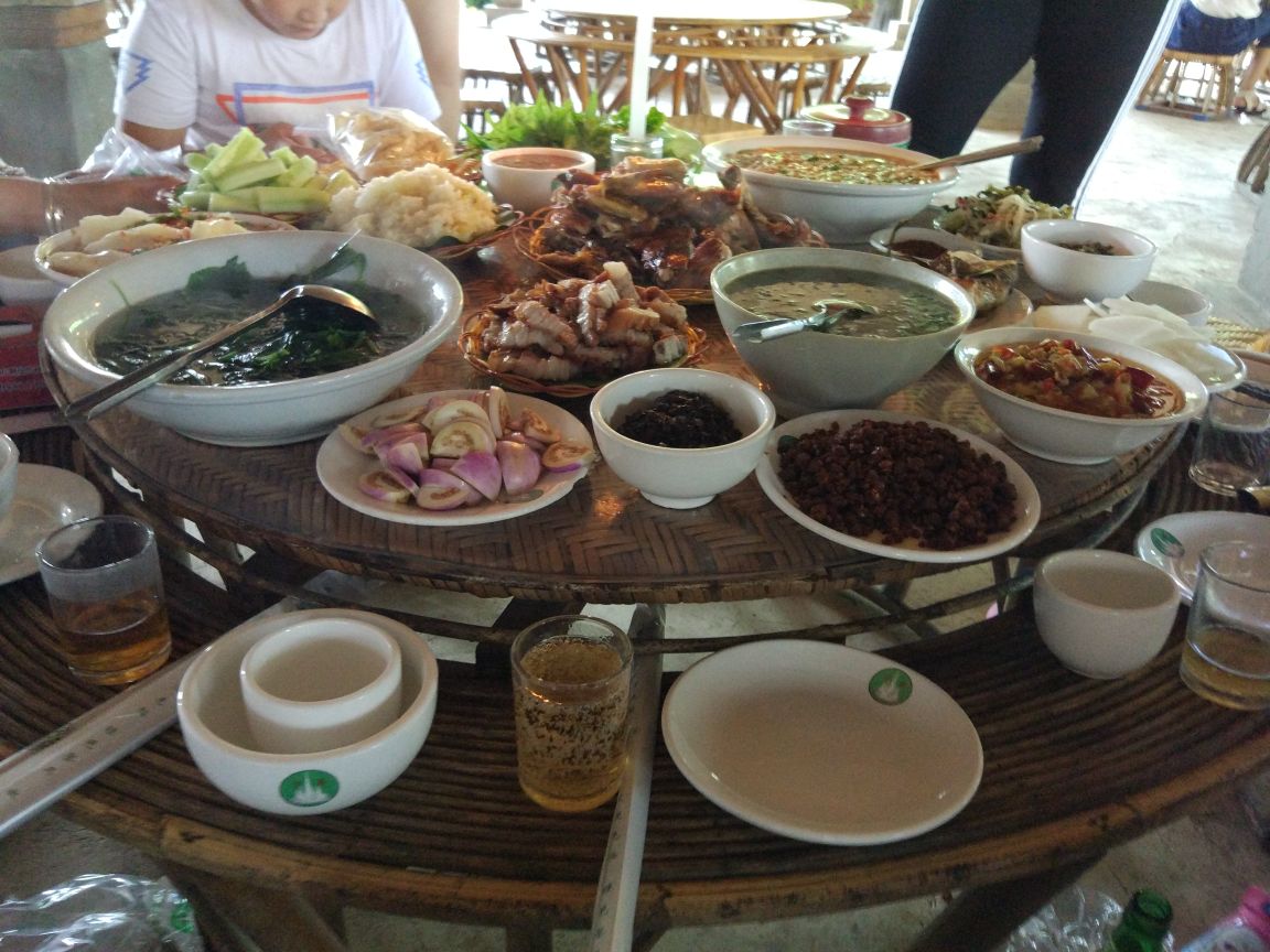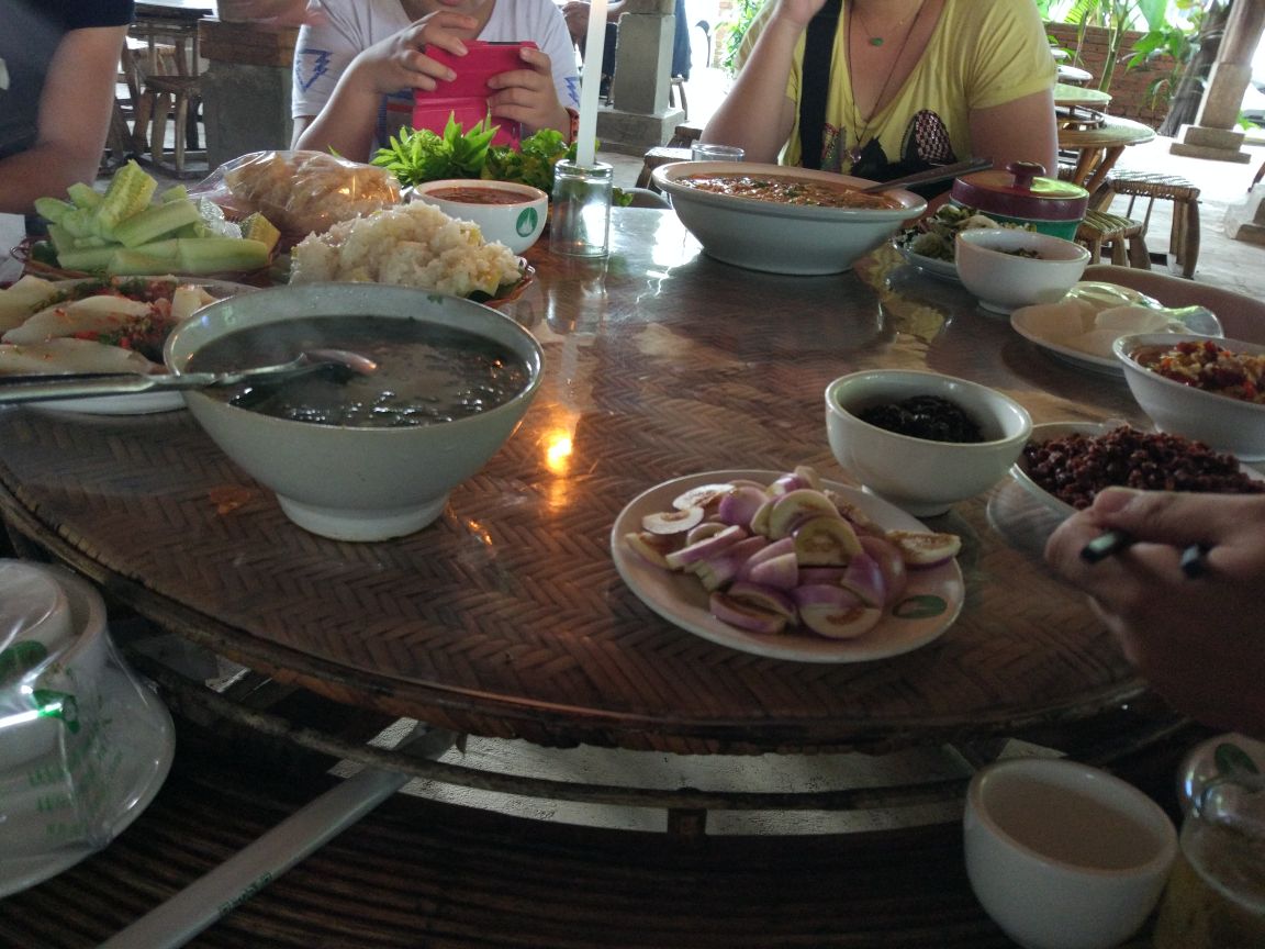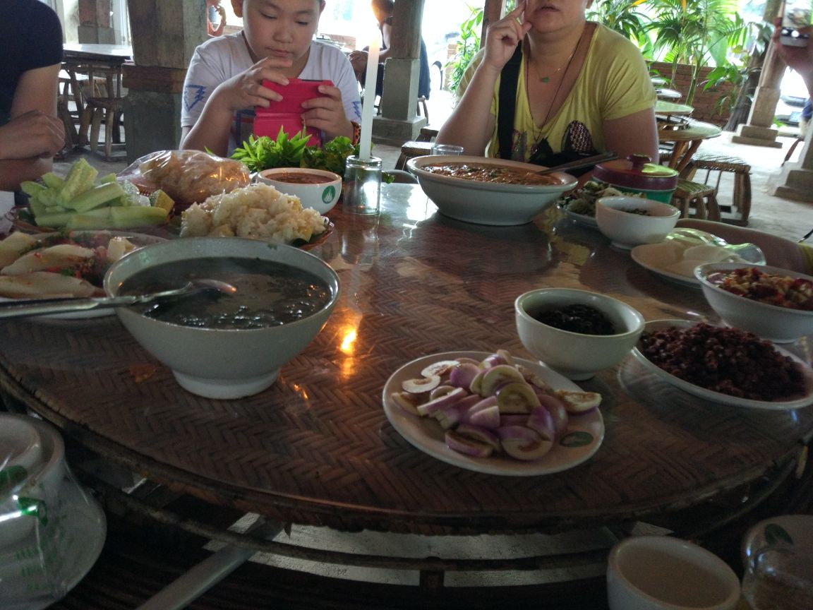 他家的菜品非常不错,口味独特,例如烤鸡,烤排骨,烤鱼等等都是傣族风味,其他菜放菠萝饭,傣家米线...