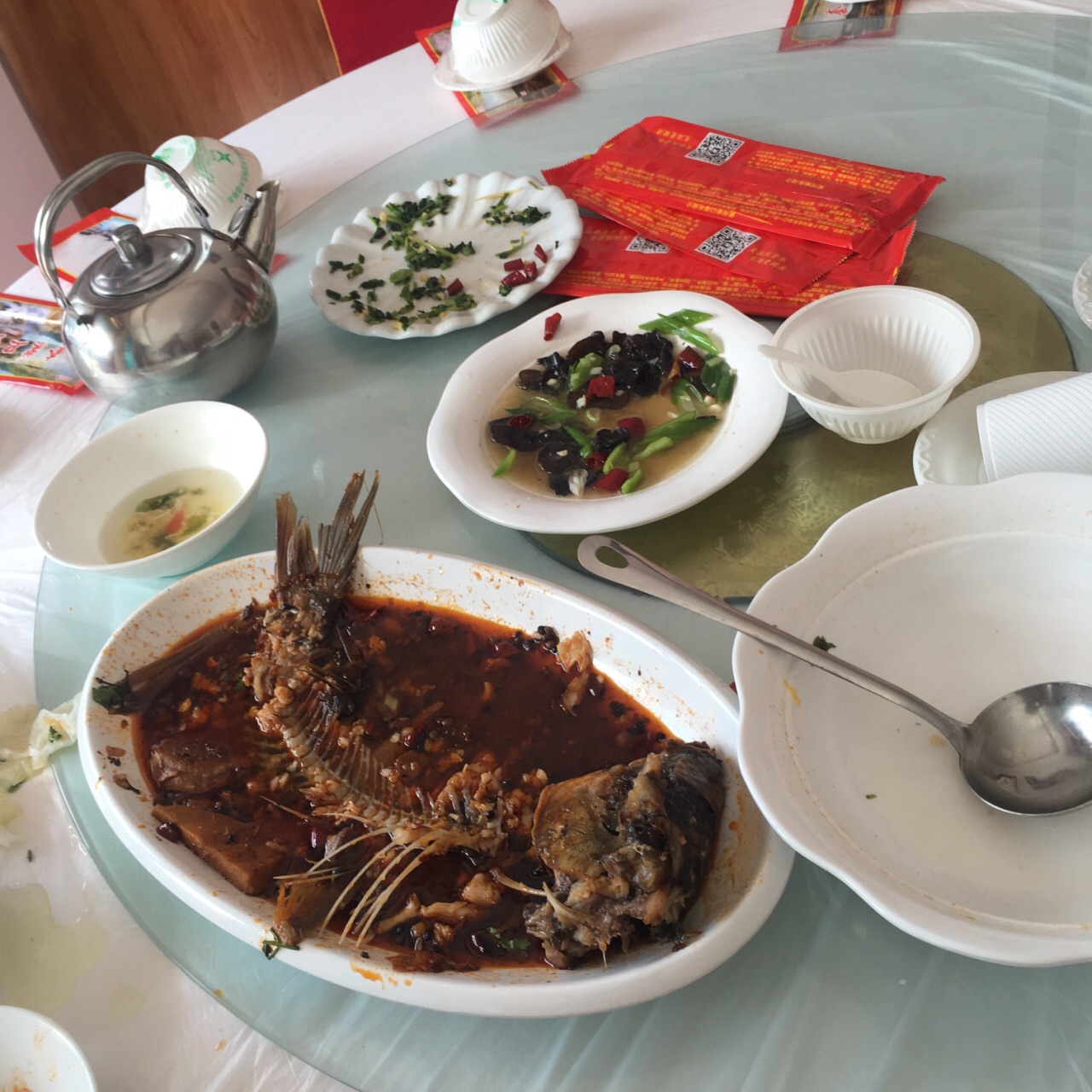 菜品非常好吃,鱼肉鲜嫩,入味,山野菜脆口,野木耳,吃完了才记得拍照,去壶口的朋友推荐这家!