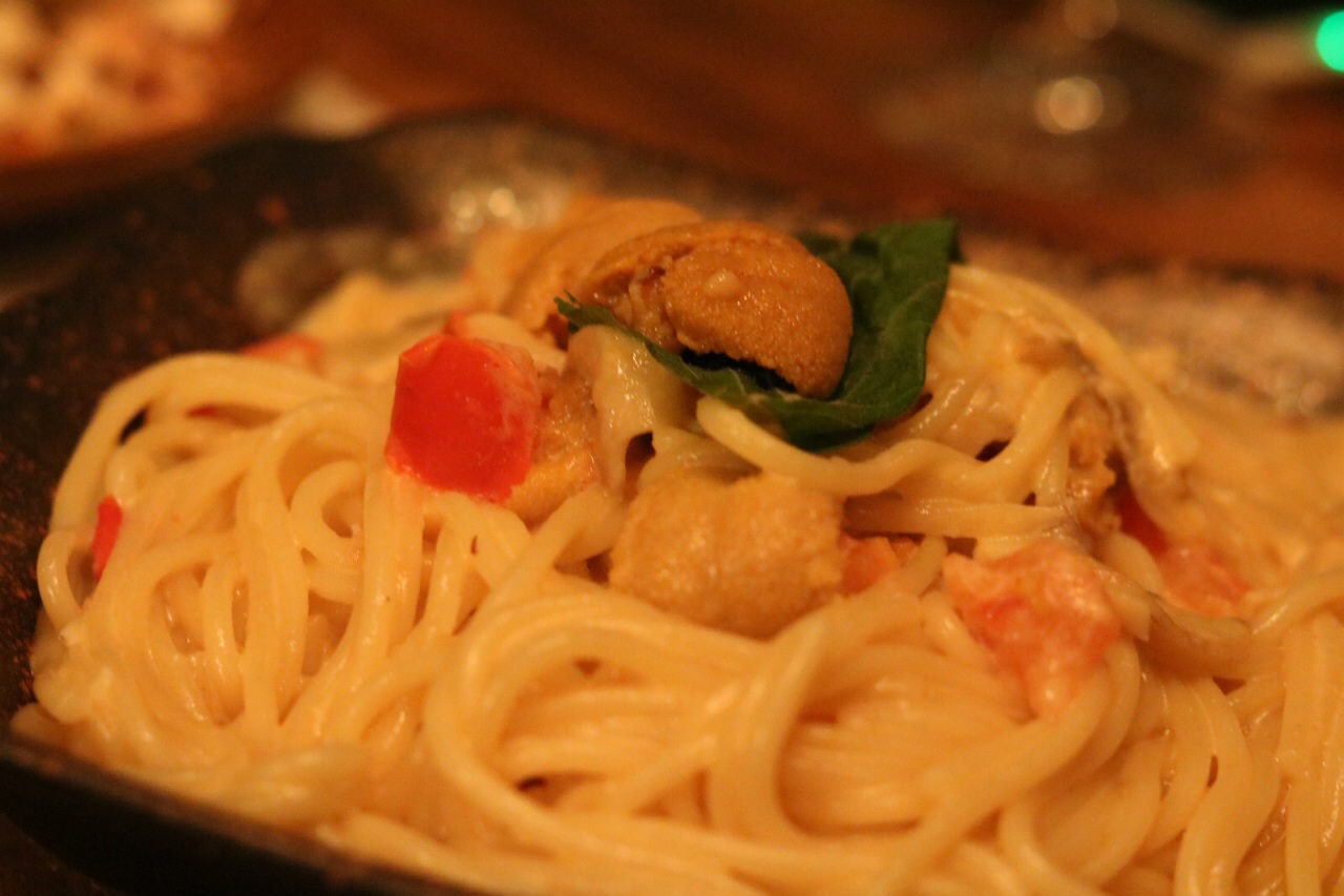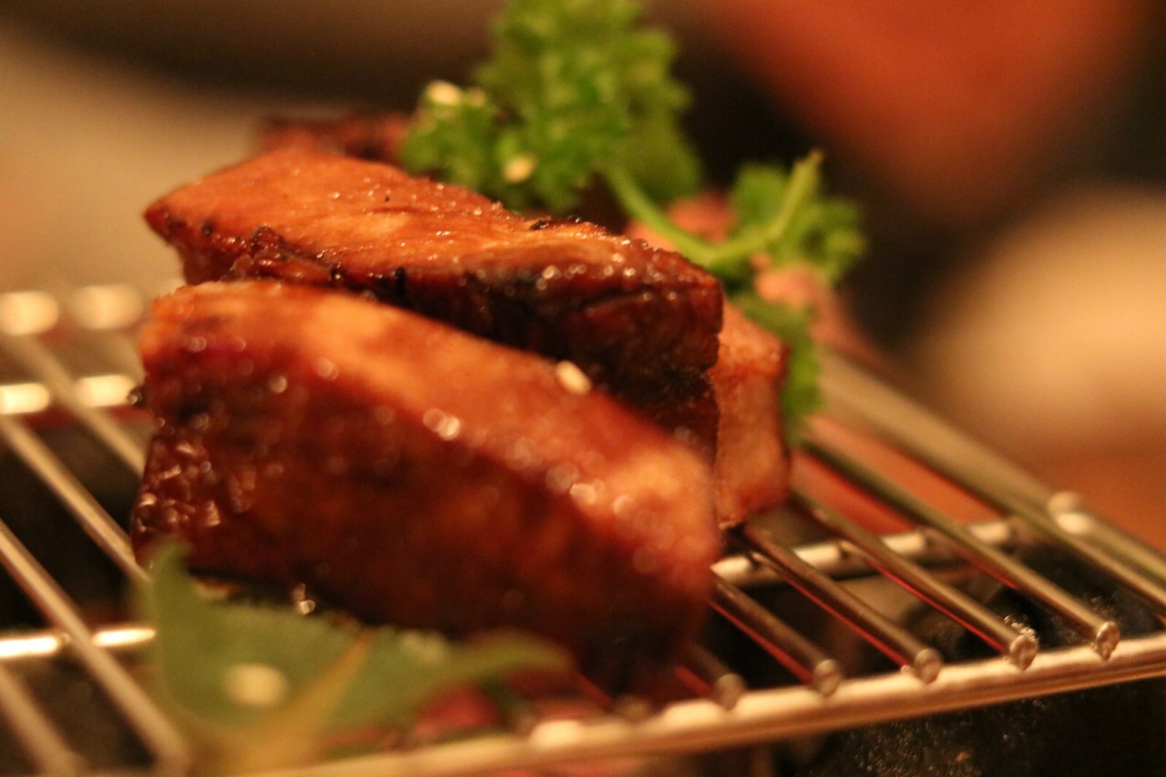 以前去吃好好先生的时候,经过这家店,特意看了一眼,毕竟这个名字花火鲤蛮特别的,而且门口有一个高脚桌,感觉似酒吧,但又写了日本料理的招牌。 于是闺蜜小聚,就选择了这家,去一探究竟。 进店发现餐厅确实是有酒吧的感觉,调酒师在调酒,有好几桌客人喝酒聊天。 餐厅两层,上面一层有个半开放小包,玻璃落地窗可以看看外面的风景,情调十足。 点了一杯酒精浓度低的鸡尾酒,有点点百利的口感,但没有这么甜,入口有咖啡的苦涩,回味很香。 日料单点,有不少特色耶。比如这家海胆,点了海胆紫苏天妇罗,海胆焗薯蓉,海胆口感嫩,加上薯蓉,吃上去绵密,不错噢。 厚切牛舌,淋上酱汁,咬起来嫩而多汁,真的很厚一块。 牛肉饭也挺不错,不过一份还挺大,大家一起抢着吃好杂劲啊,哈哈哈。